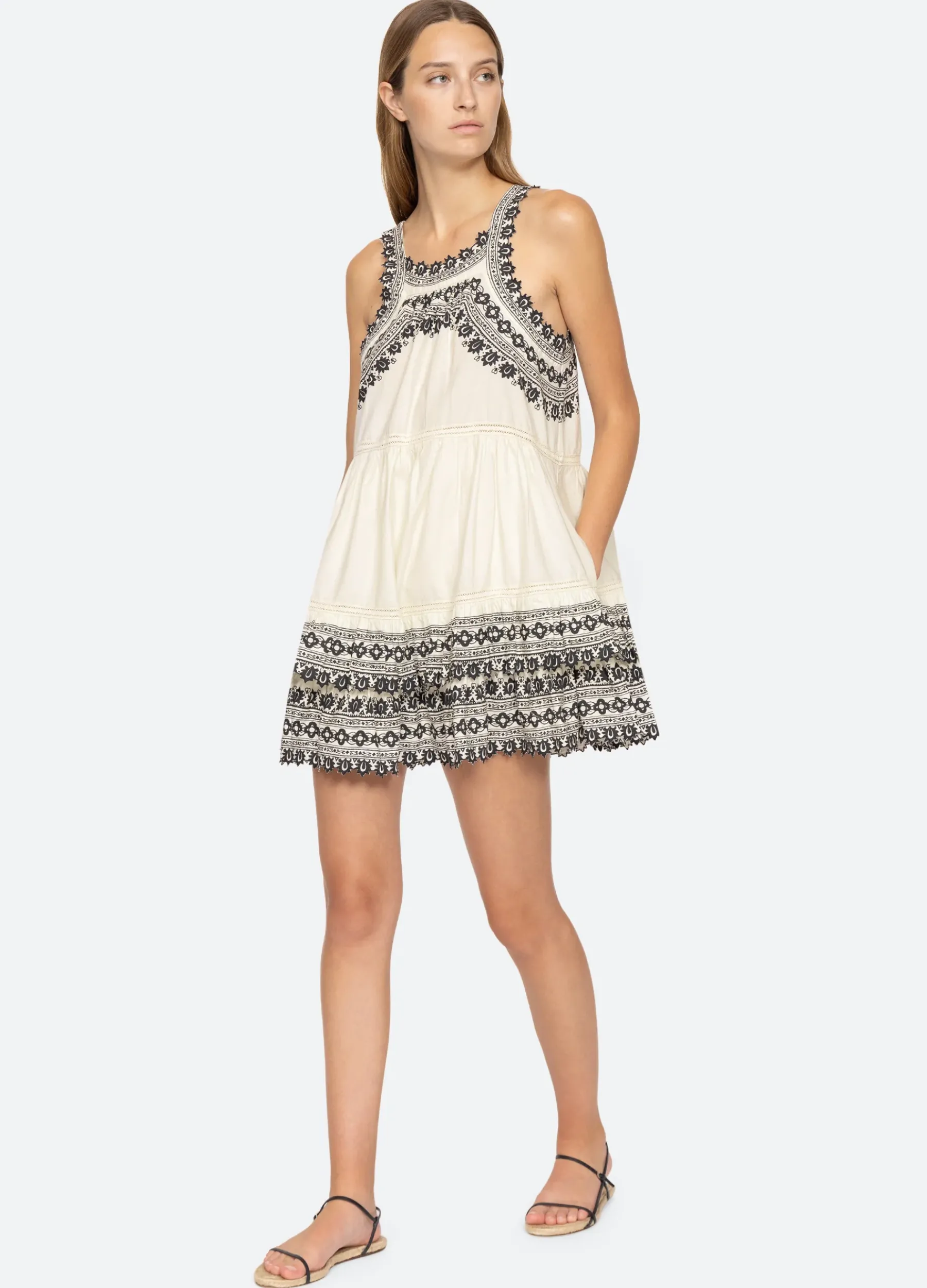 The Amina embroidered tank dress features a tiered ruffle hem. Designed for an easy, relaxed fit.