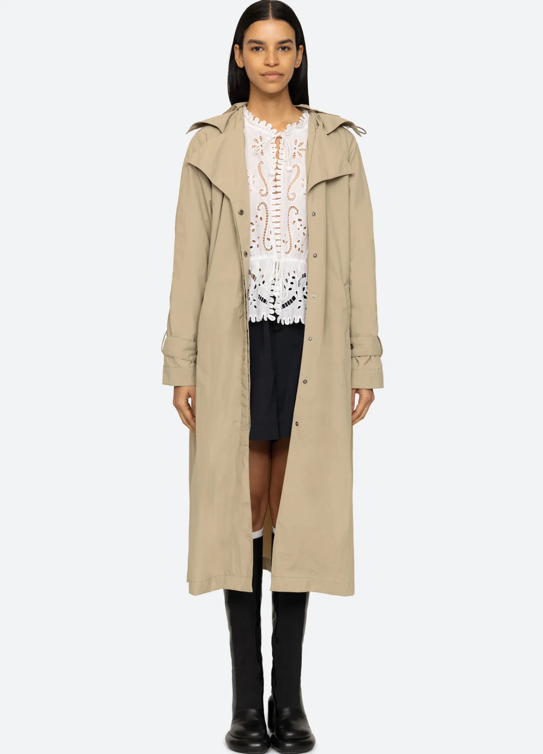 The Asta trench coat features a removeable belt. Designed for an easy, relaxed fit.
