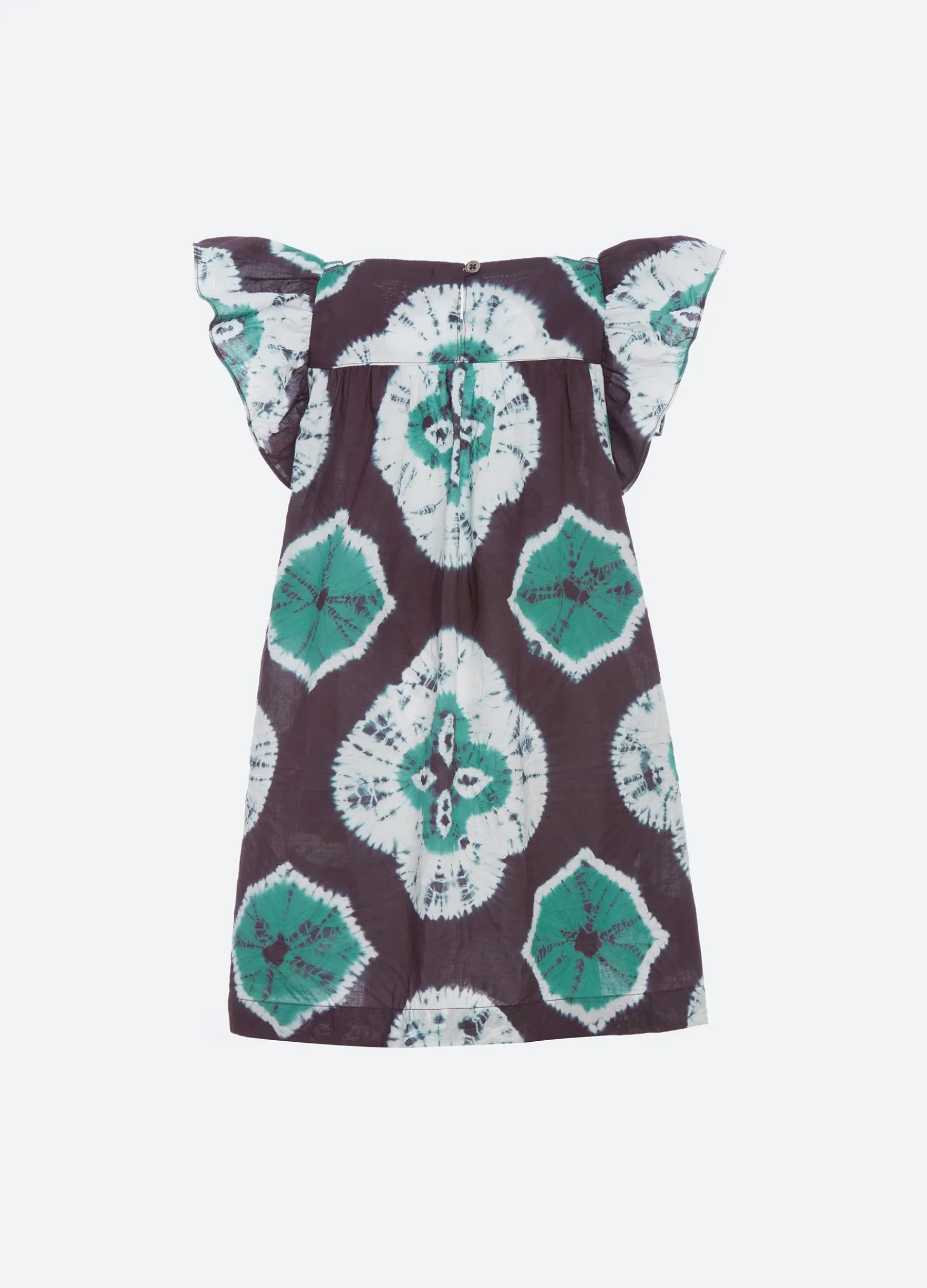 The Aveline tie dye kids dress features flutter sleeves and a square neckline. Part of our mommy & me coordinating collection. Please note when it comes to hand dyed garments, color variation is a normal part of the process. No two are exactly alike.