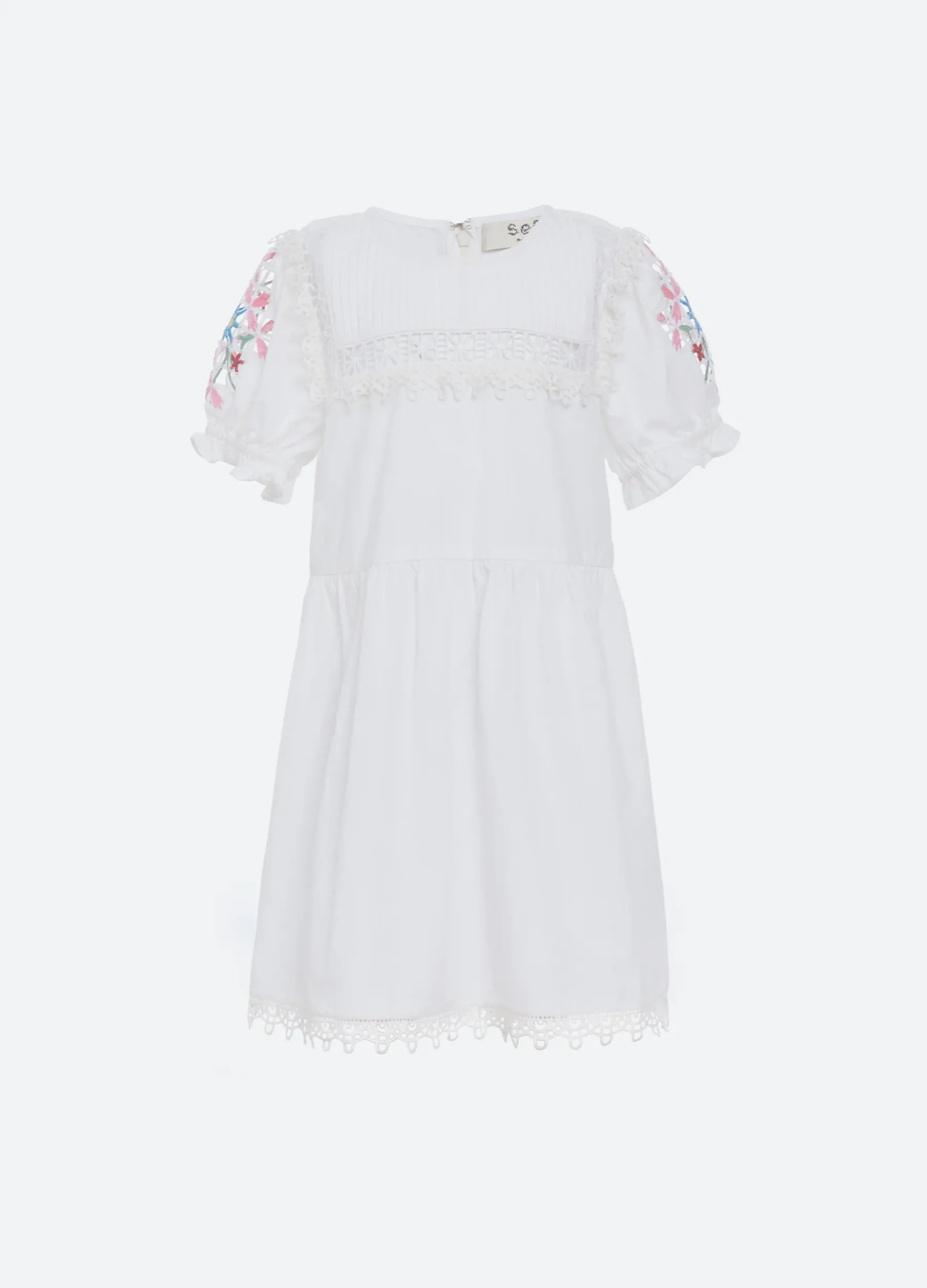 The Beena kids dress features puff sleeves and embroidered detailing. Part of our mommy & me coordinating collection.