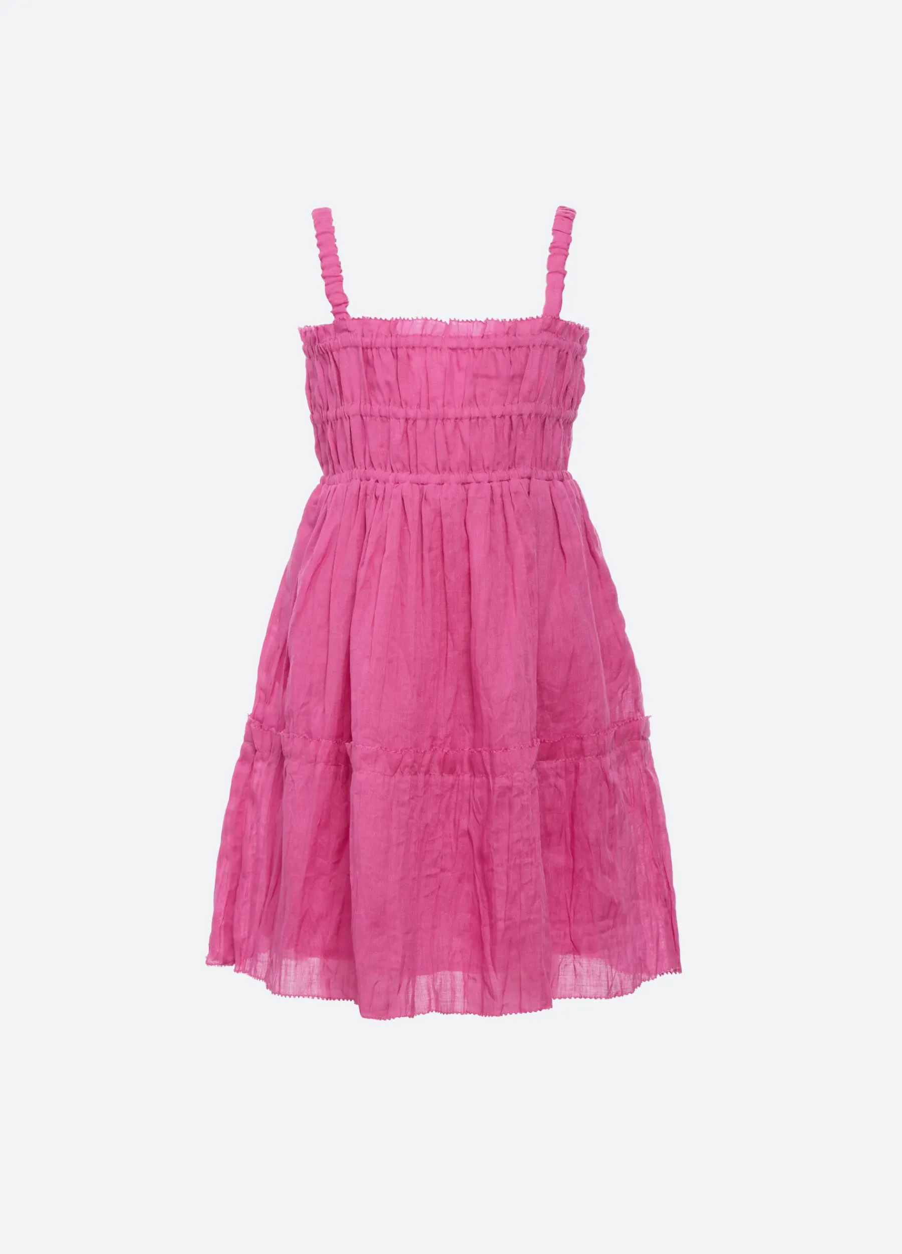 The Cole smocked kids dress features a tiered skirt and raw edge detailing. Part of our mommy & me coordinating collection.