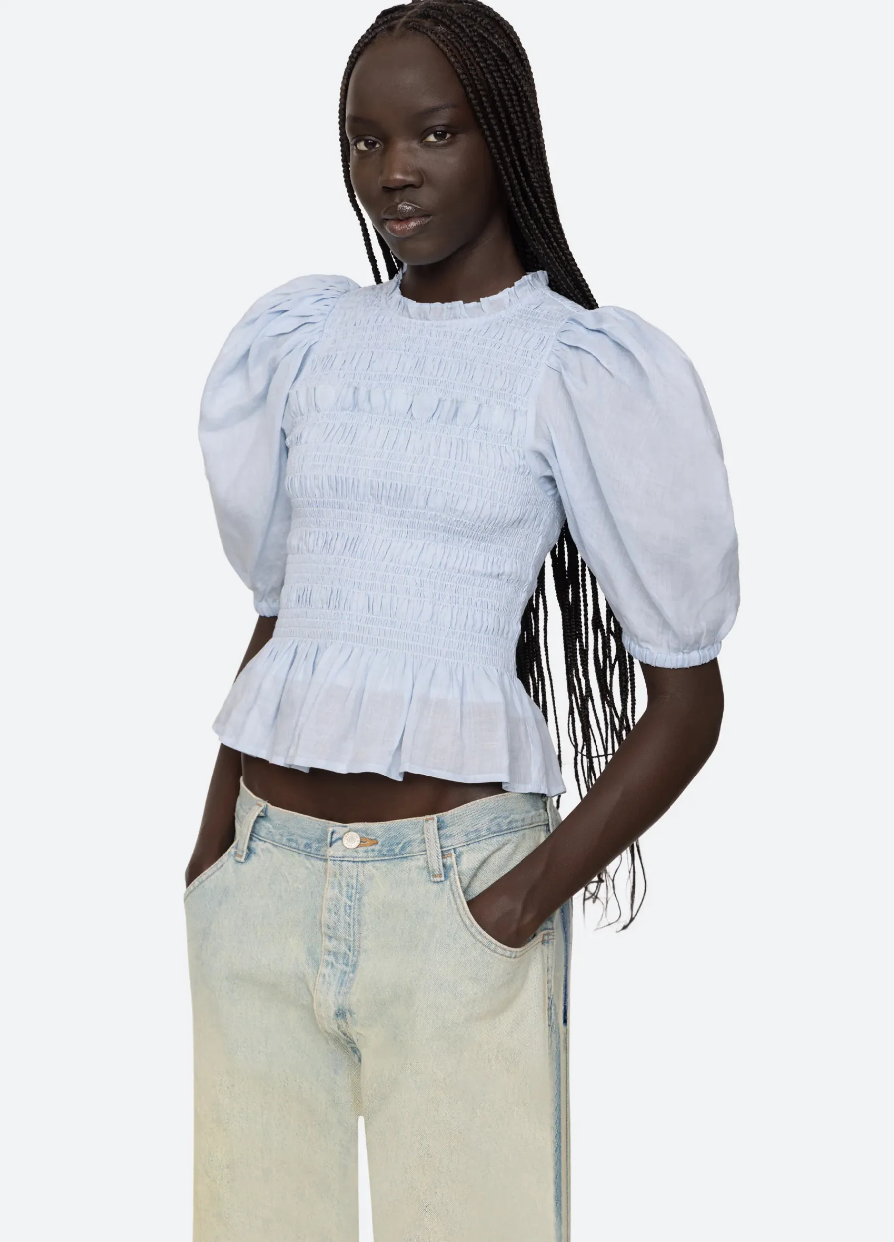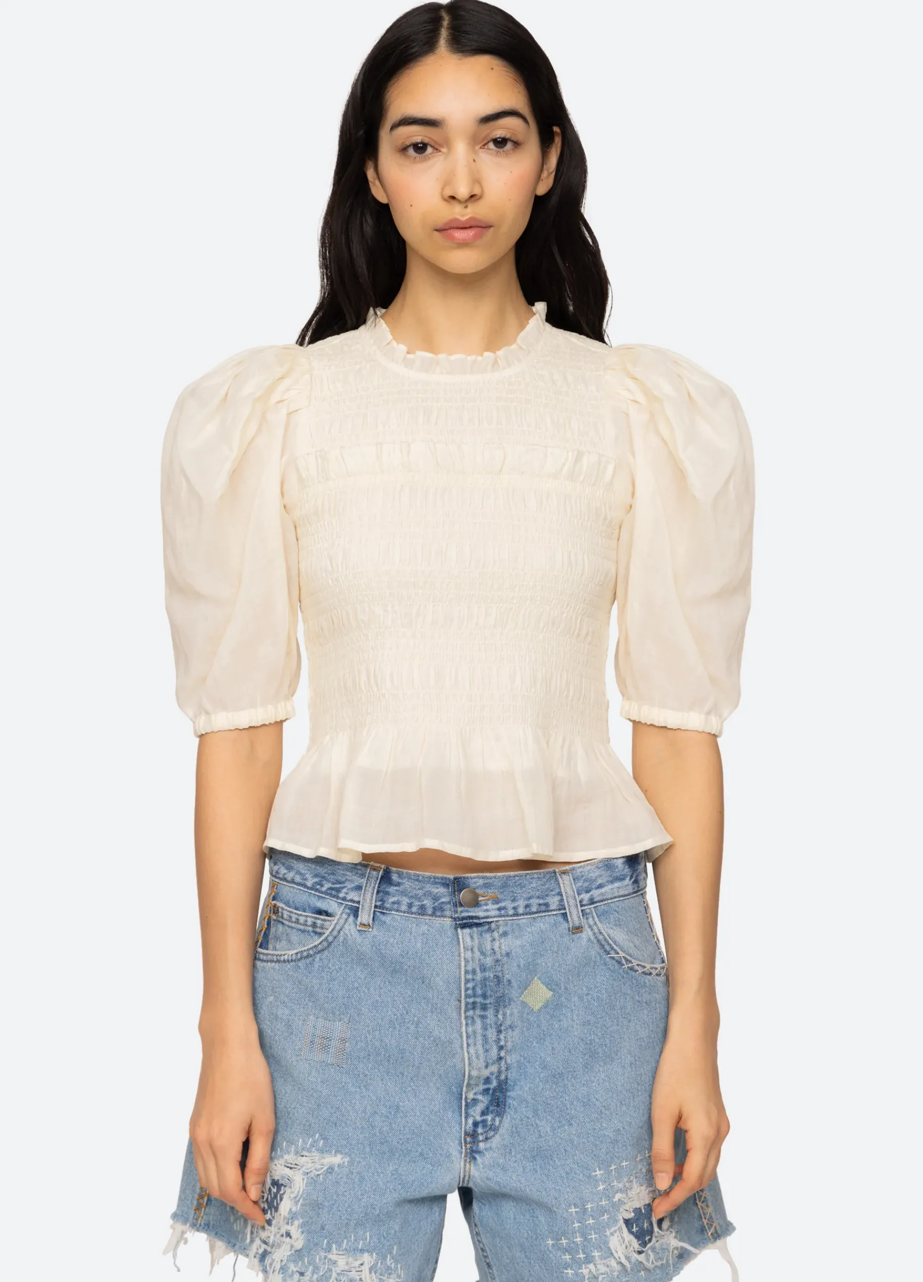 The Cole top features puff sleeves, smocked bodice and ruffle detailing.