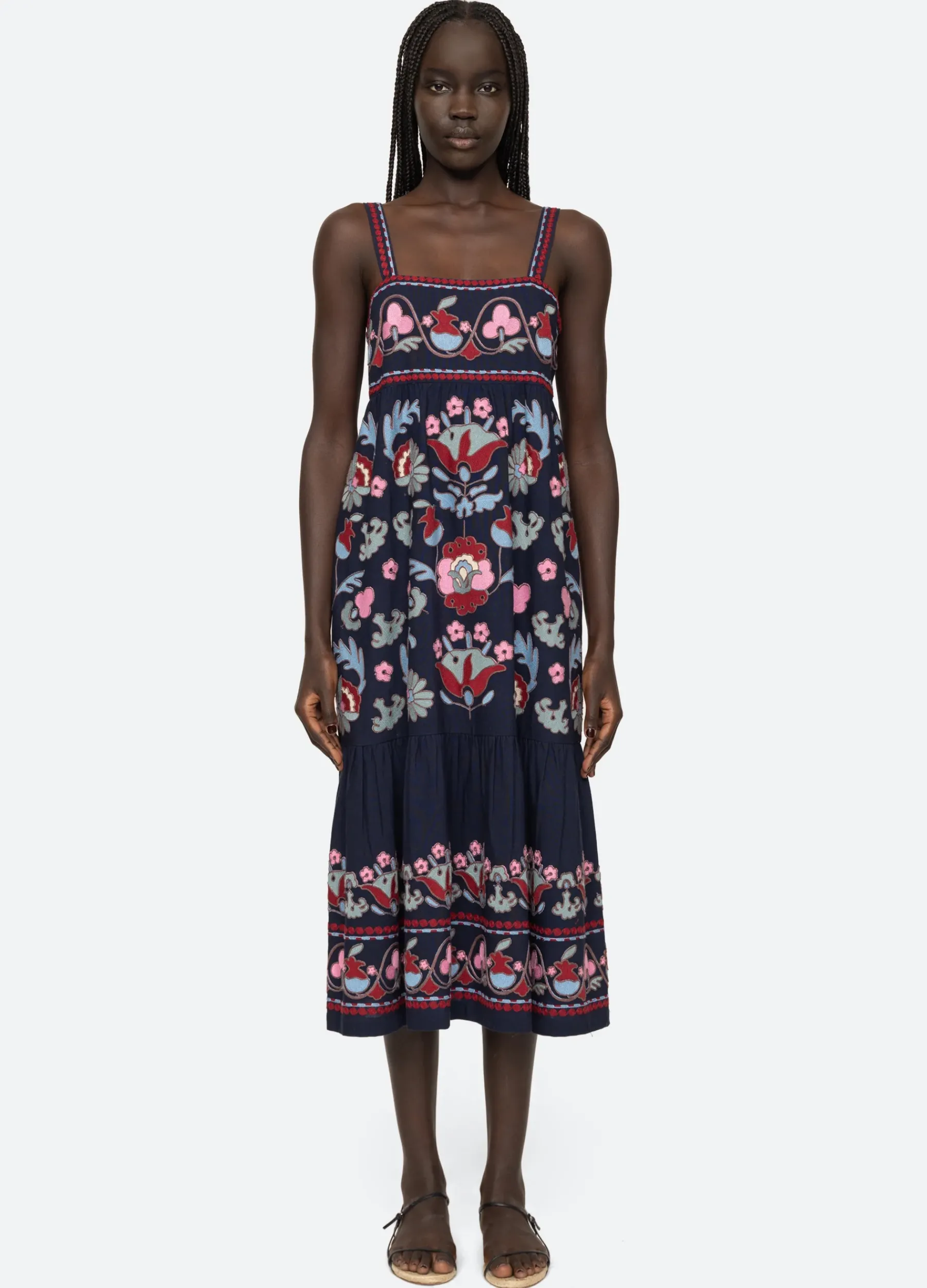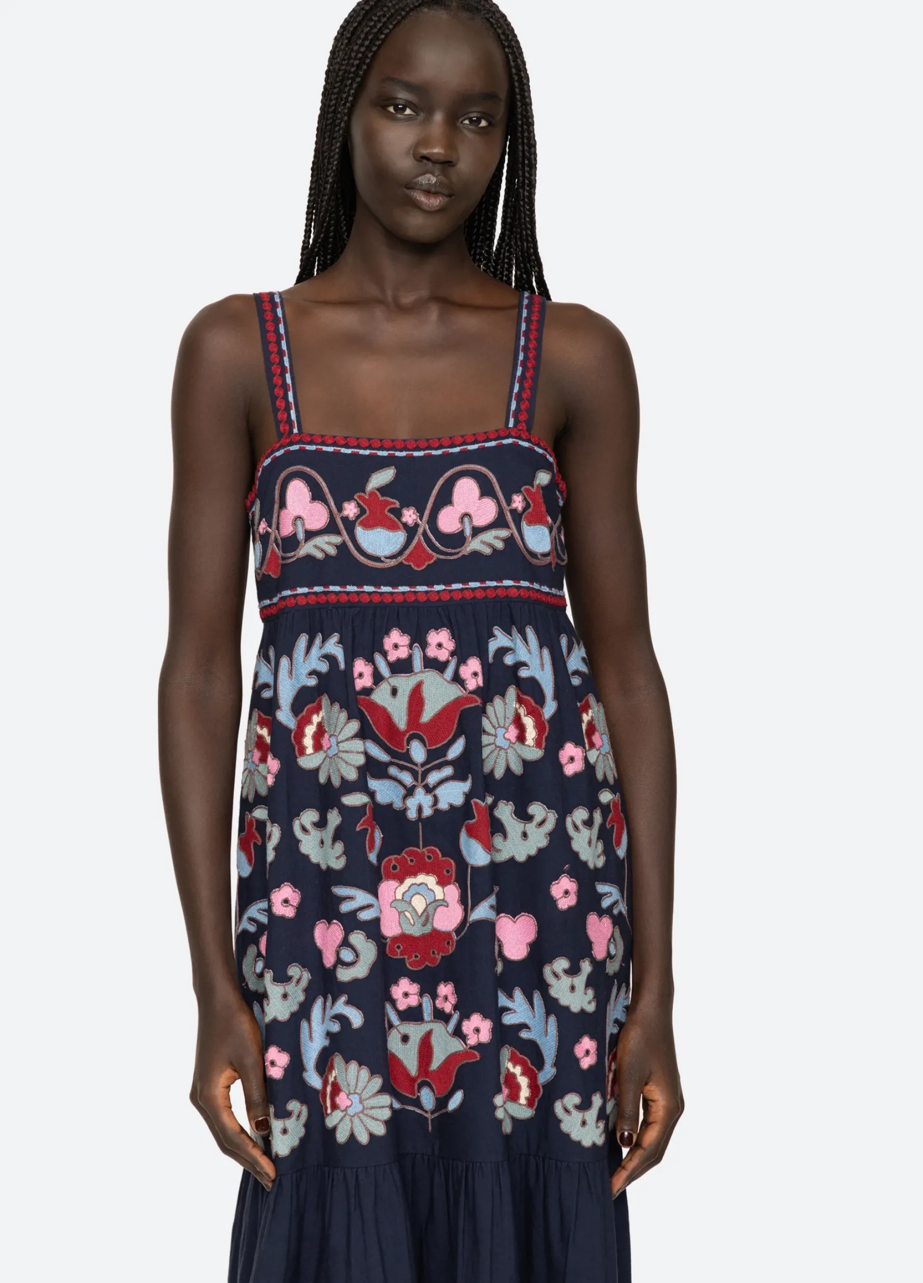 The Eclisse embroidered dress features embroidered floral detailing throughout.