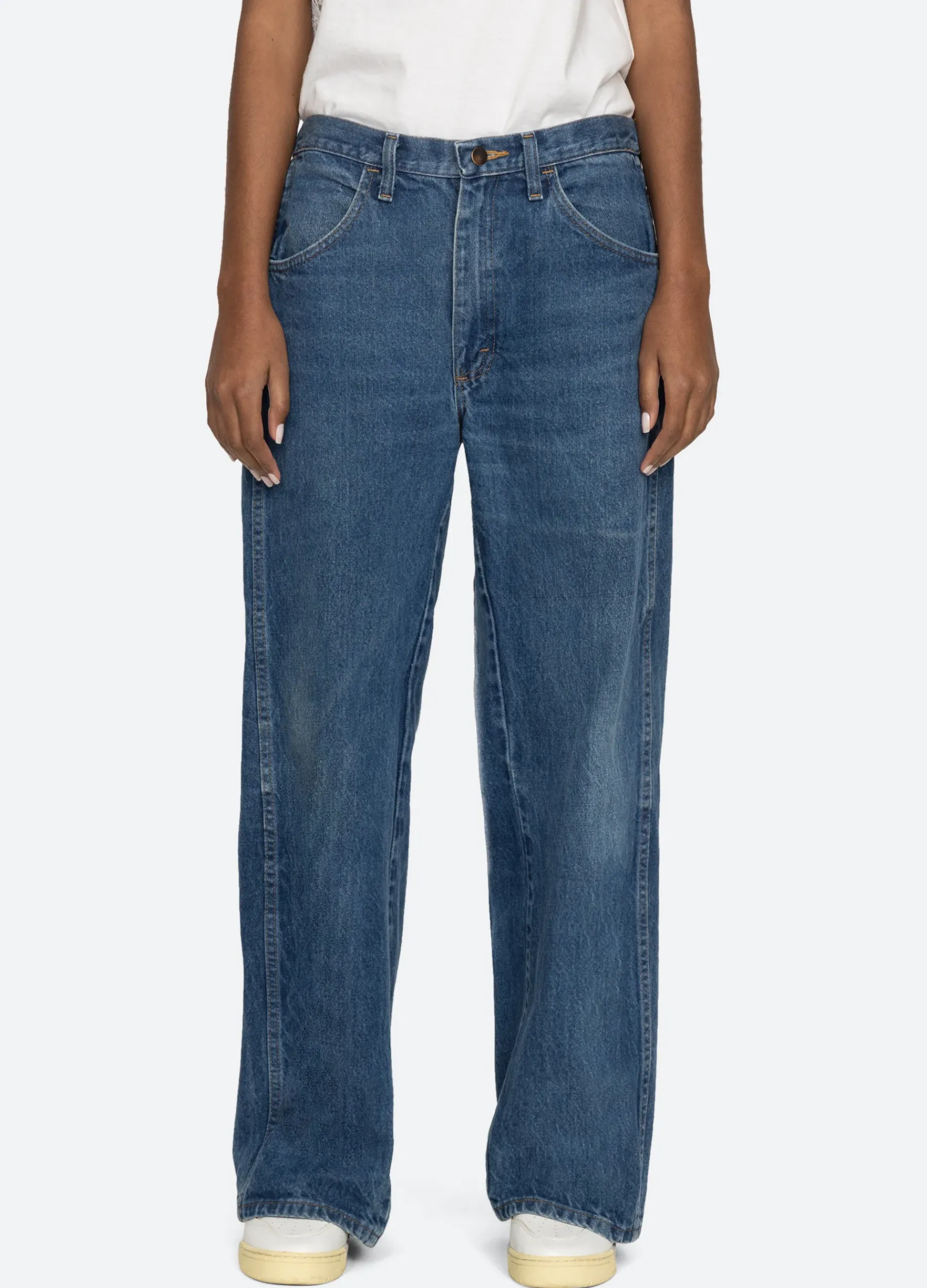 The Elena denim baggy jeans are designed for an oversized, relaxed fit.