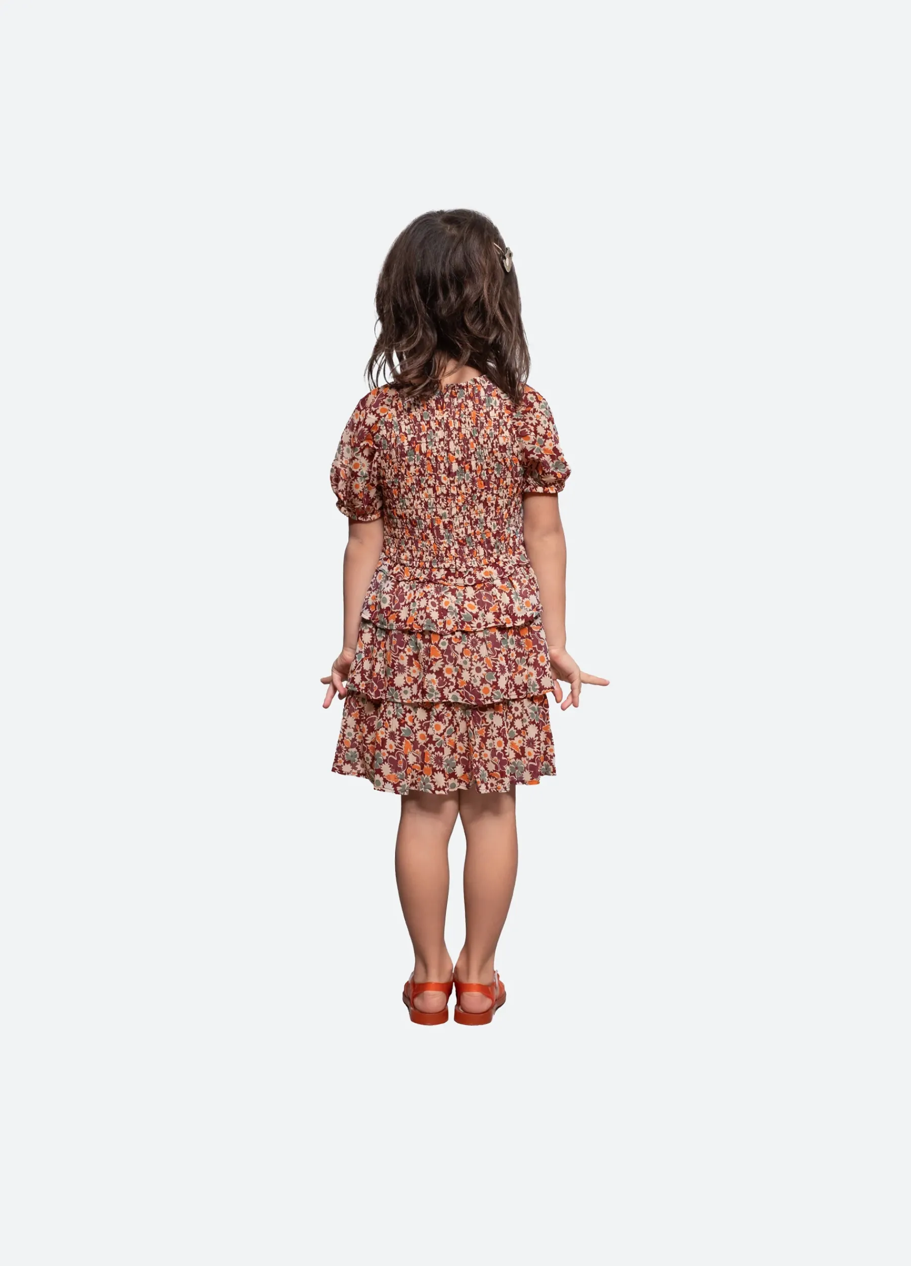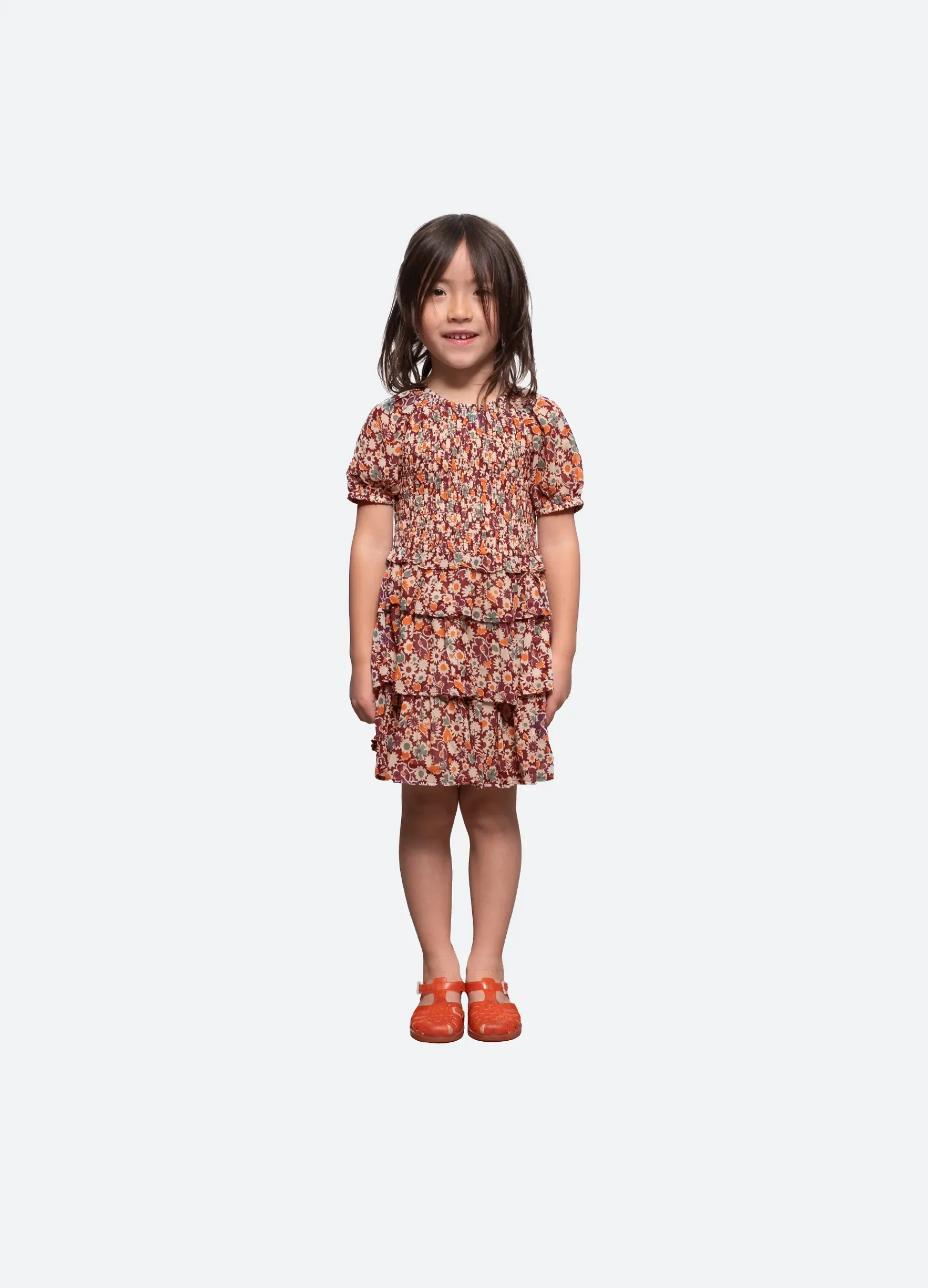 The Fernande print kids dress features puff sleeves, tiered ruffle skirt, and a smocked bodice. Part of our mommy & me coordinating collection.