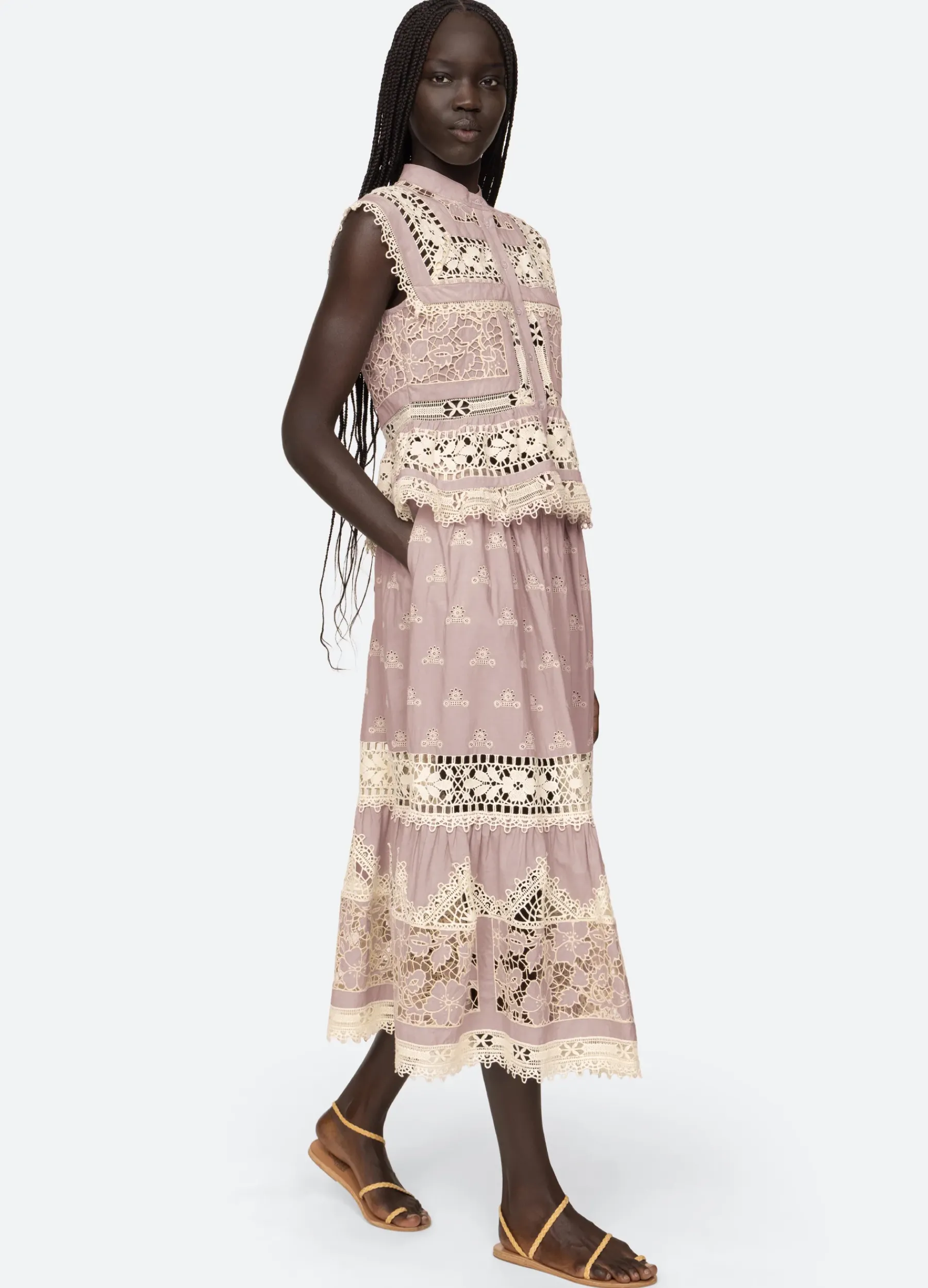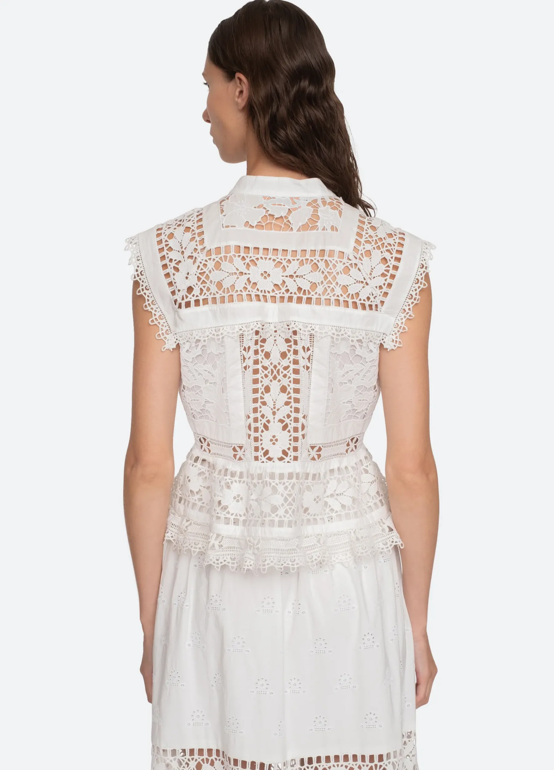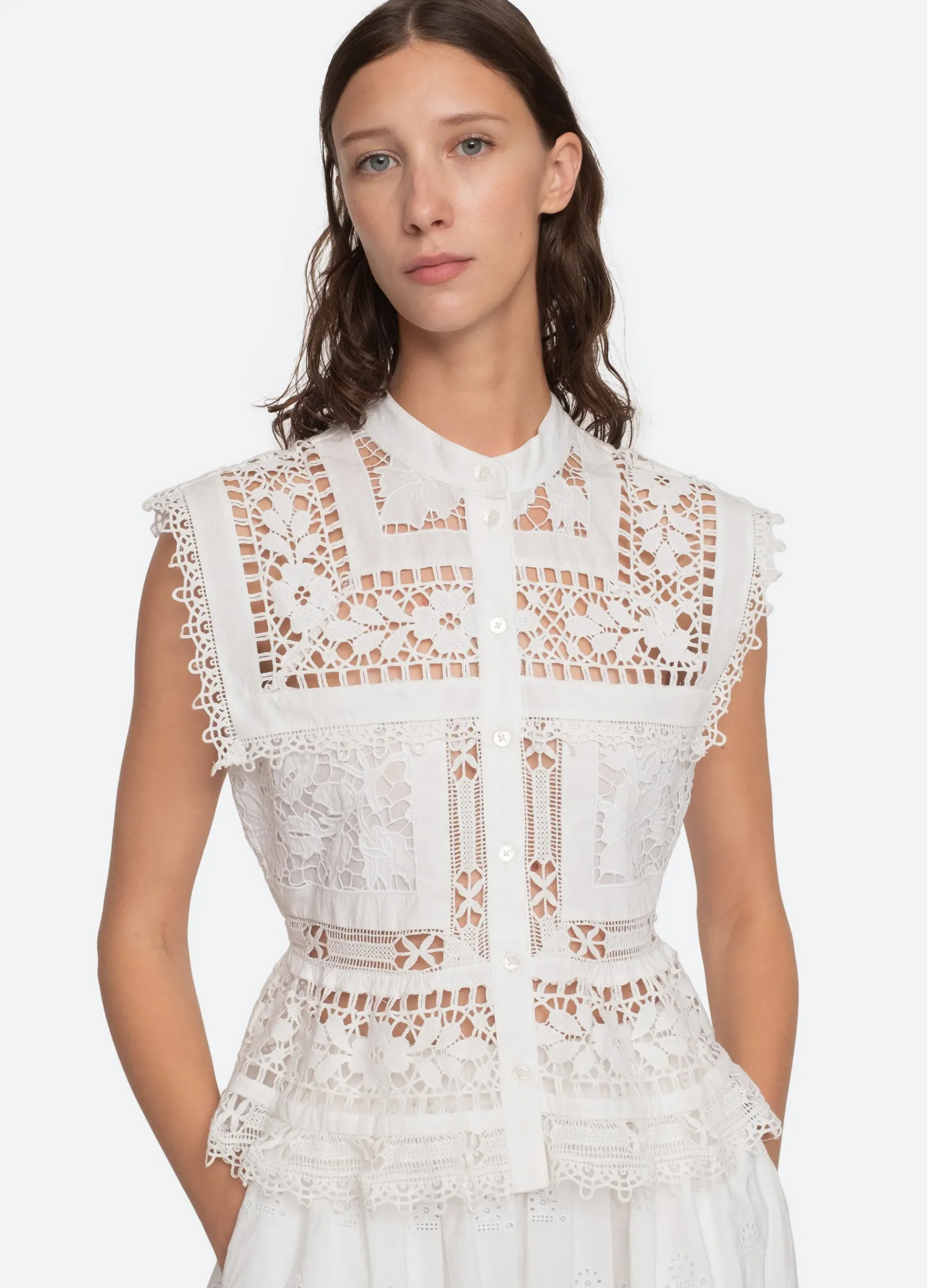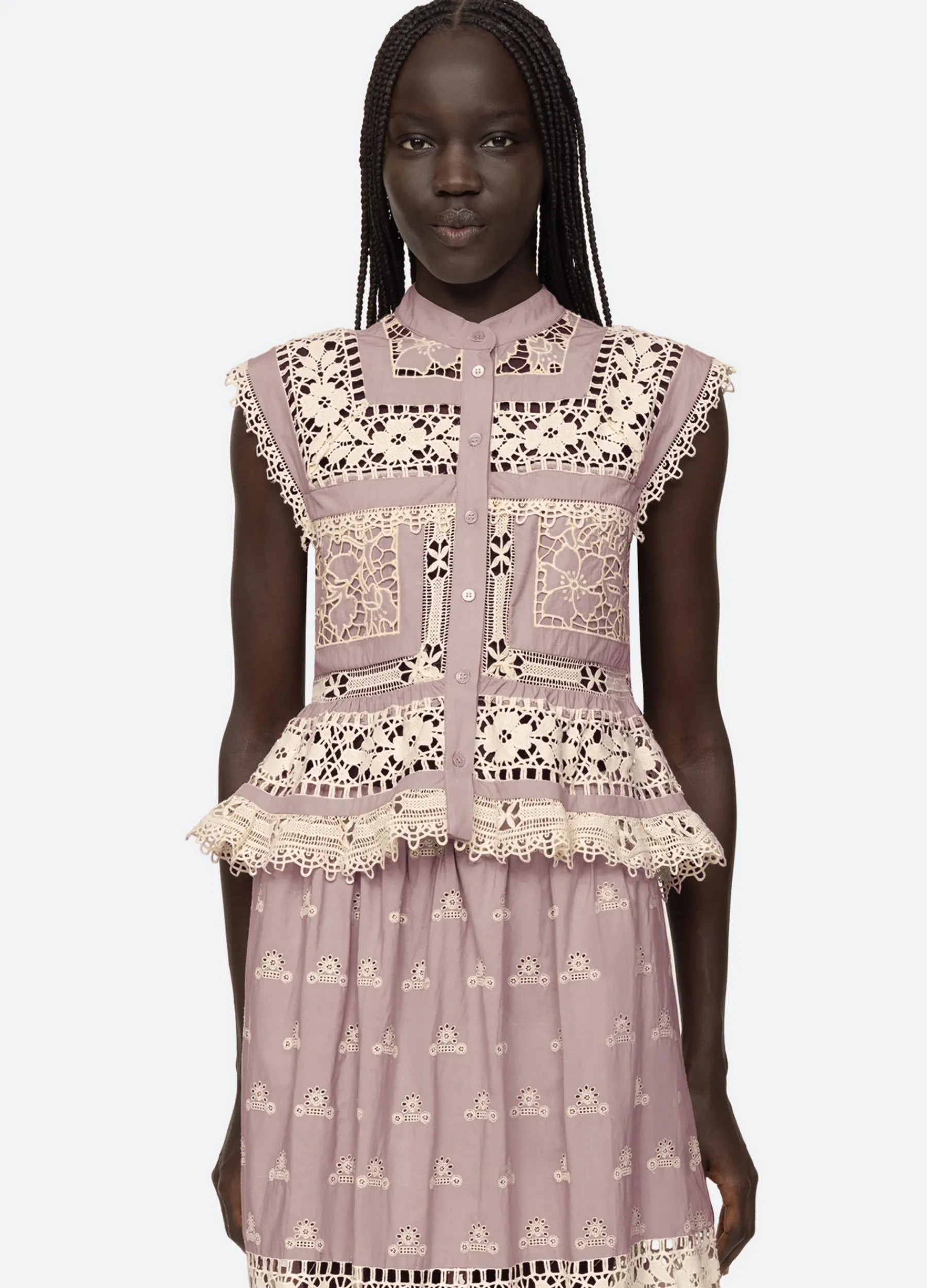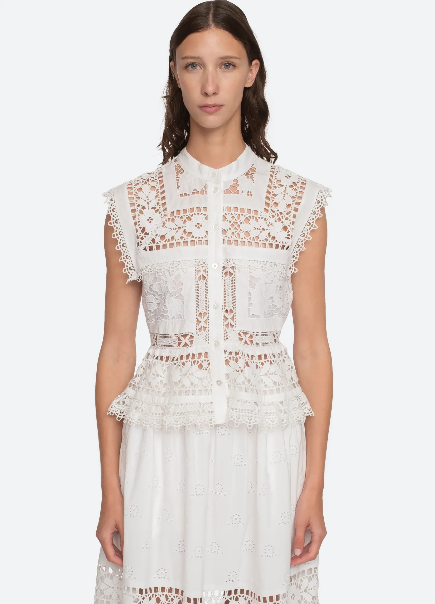 The Joah embroidered lace top features delicate lace detailing throughout and button front closure. Pairs perfectly with the Joah skirt.