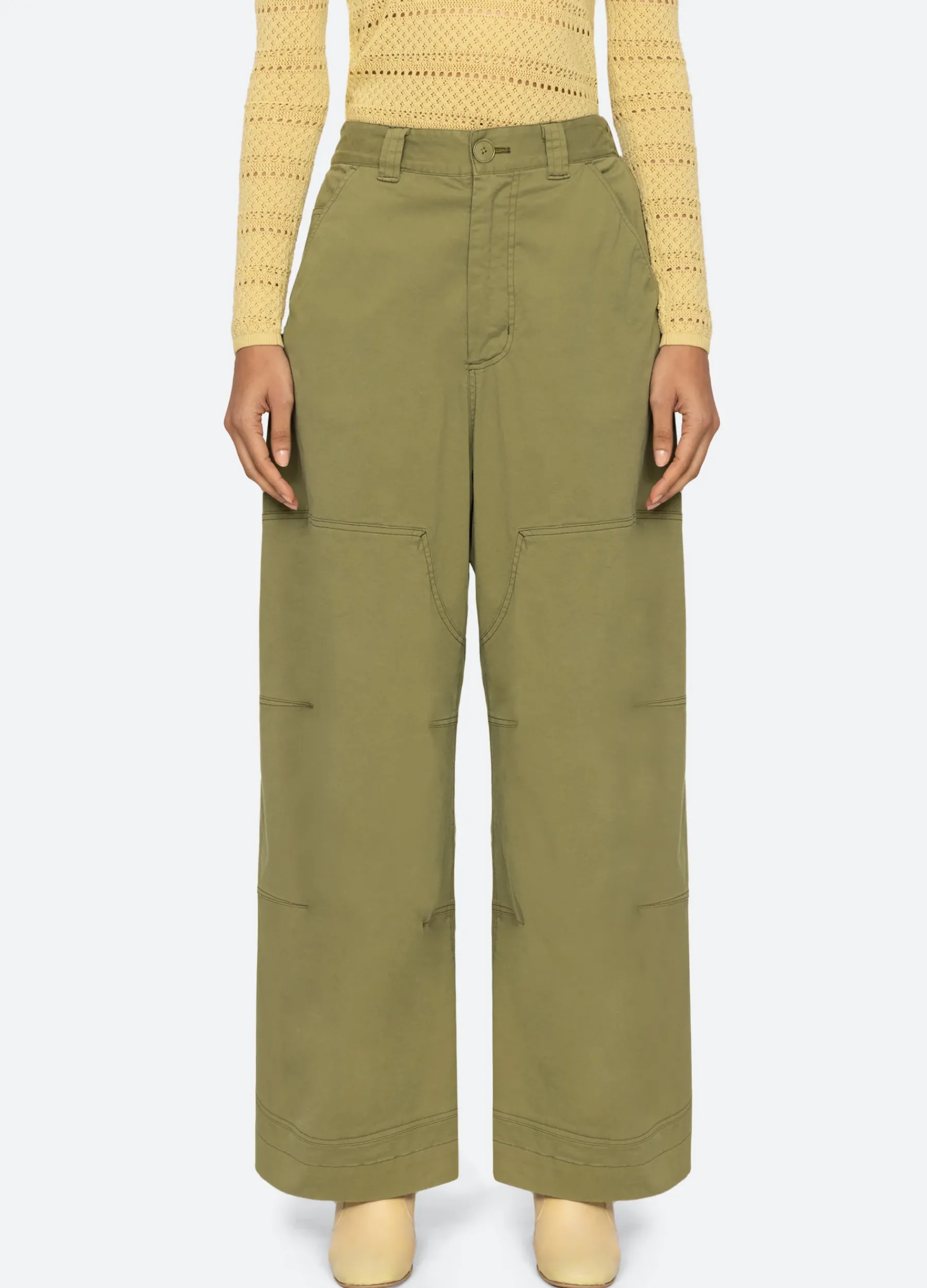 The Karina pants feature a wide leg silhouette and elasticized back. Designed for an easy, relaxed fit.