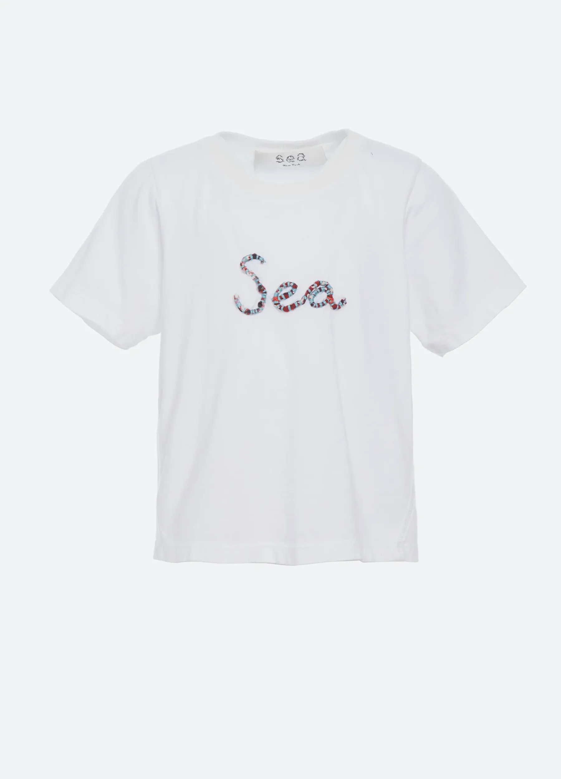 The Sea embroidered kids t-shirt features a multicolored embroidered “Sea” logo. Part of our mommy & me coordinating collection.
