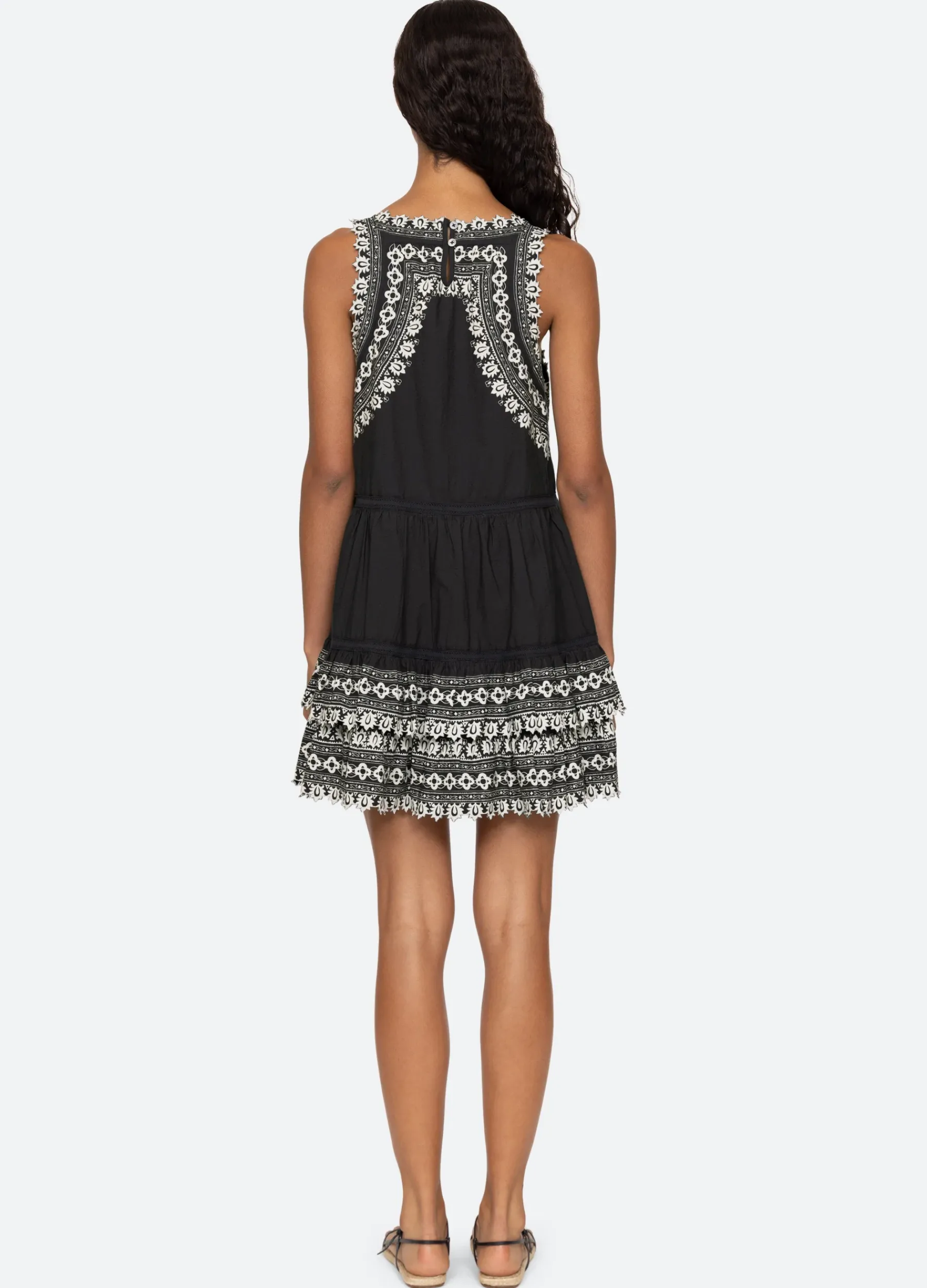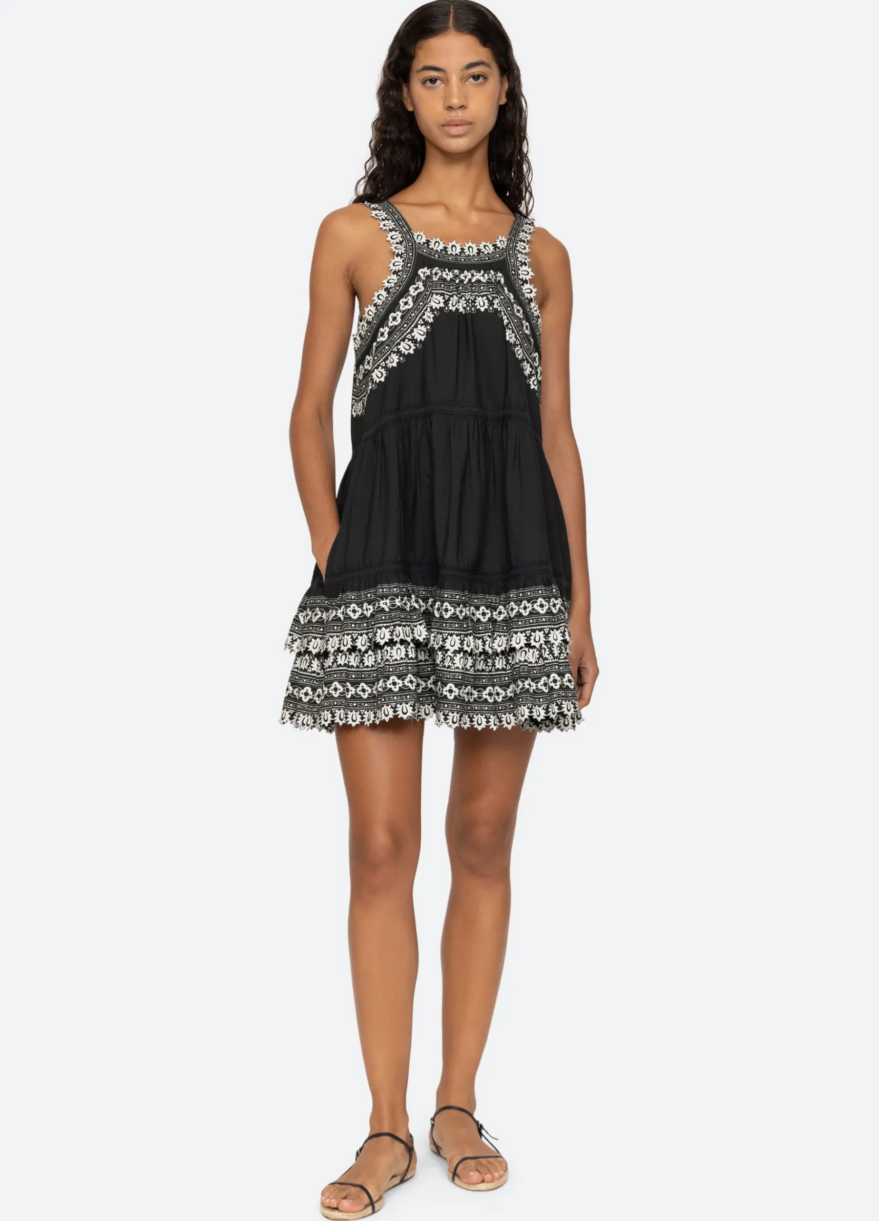 The Amina embroidered tank dress features a tiered ruffle hem. Designed for an easy, relaxed fit.