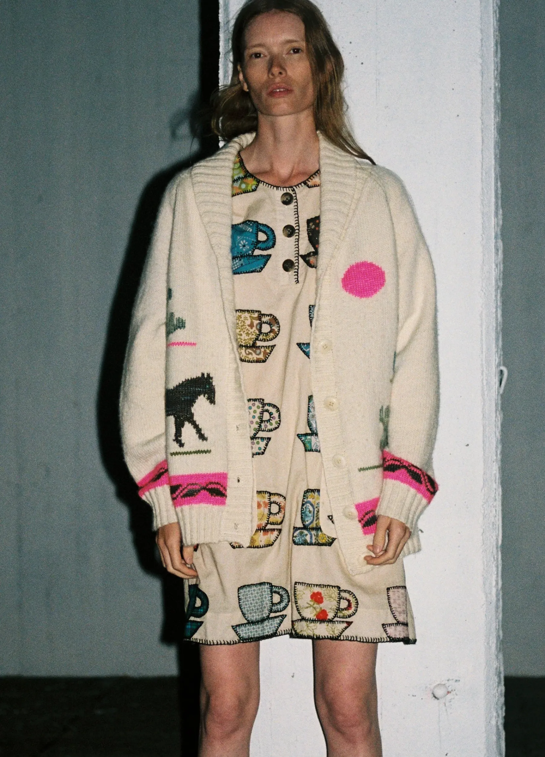 The Anette long sleeve embroidered cardigan features a colorful desert motif and is designed for an oversized, relaxed fit. Please note when it comes to hand embroidered & hand dyed garments, motif & color variations may occur form garment to garment. No two are exactly alike.