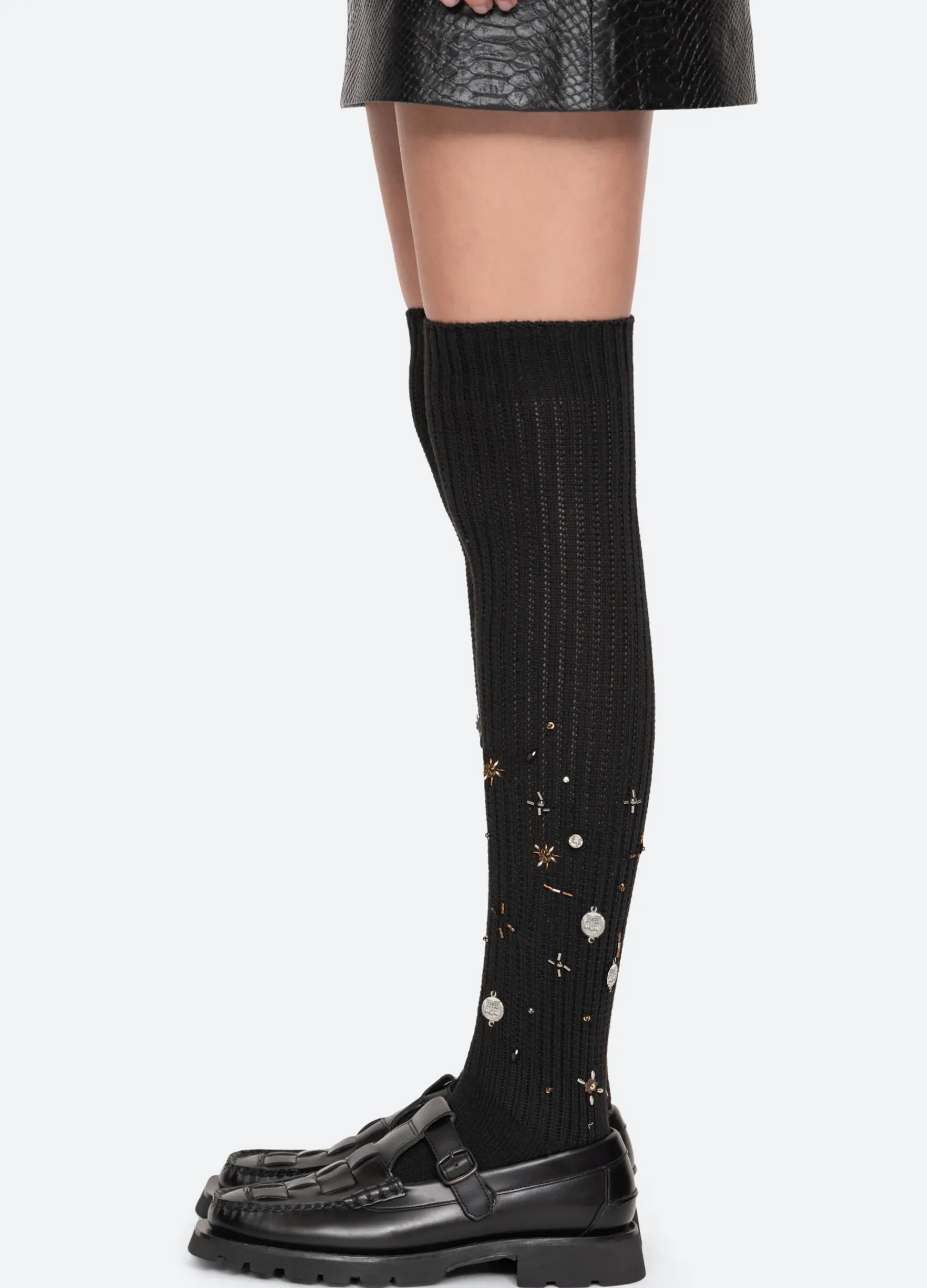 The Bethel beaded socks are embellished with beaded accents.
