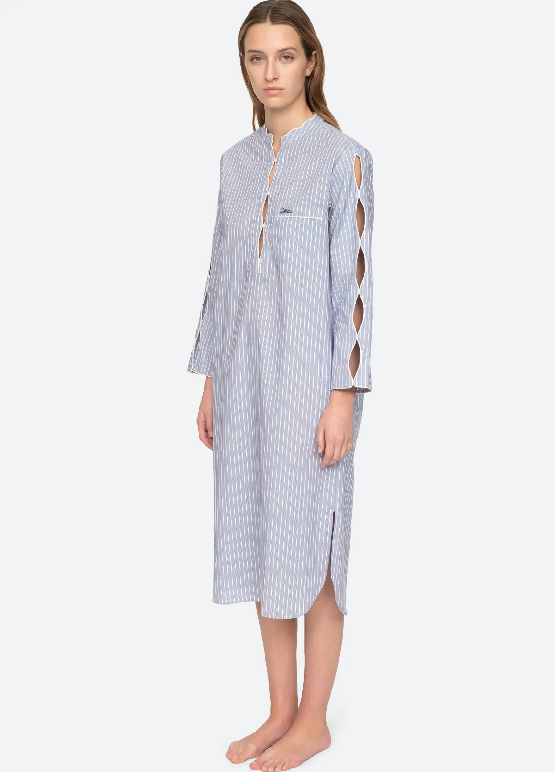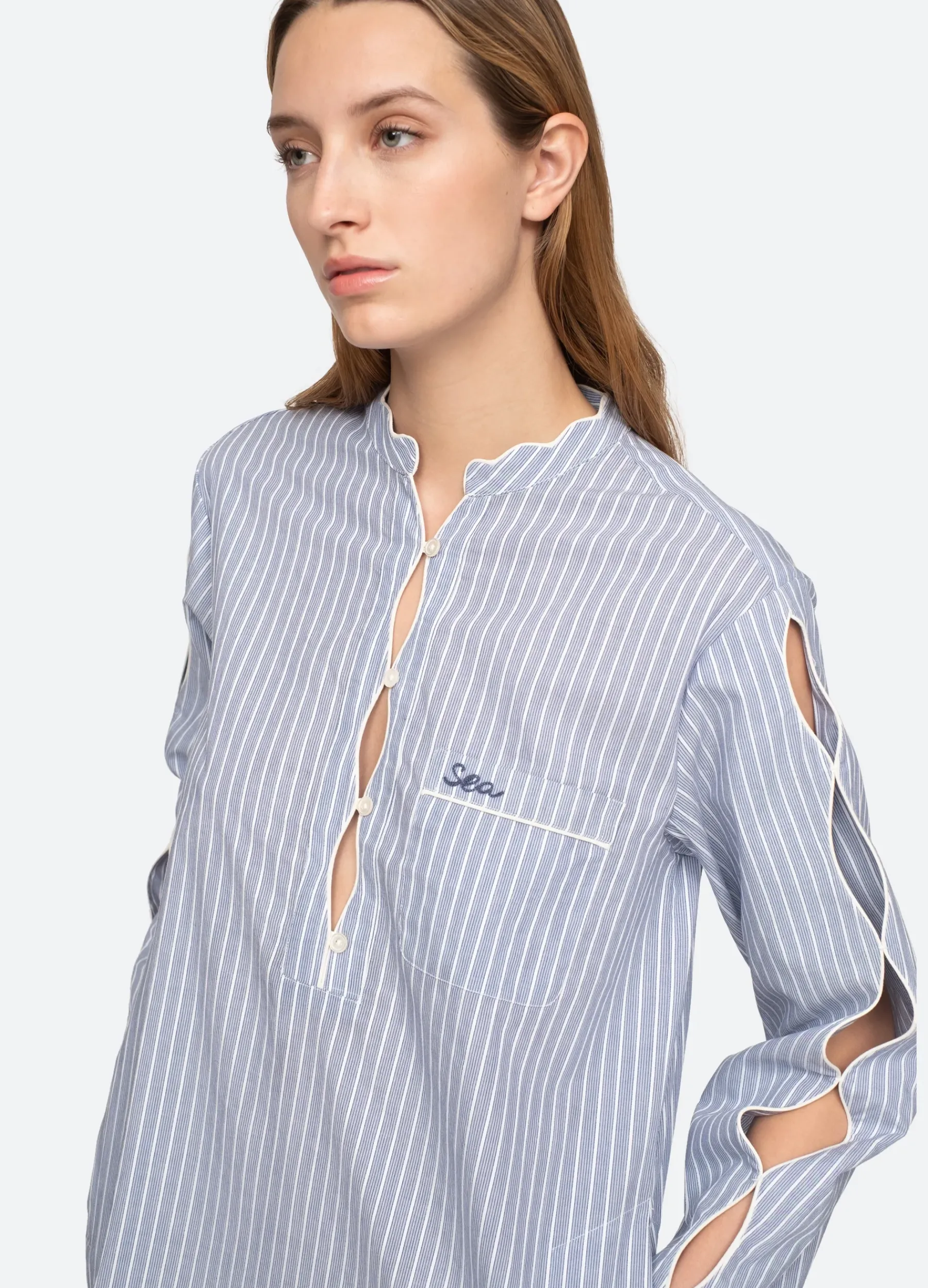 The Bree binding pajama tunic features embroidered ‘SEA’ logo and cut-out detailing.