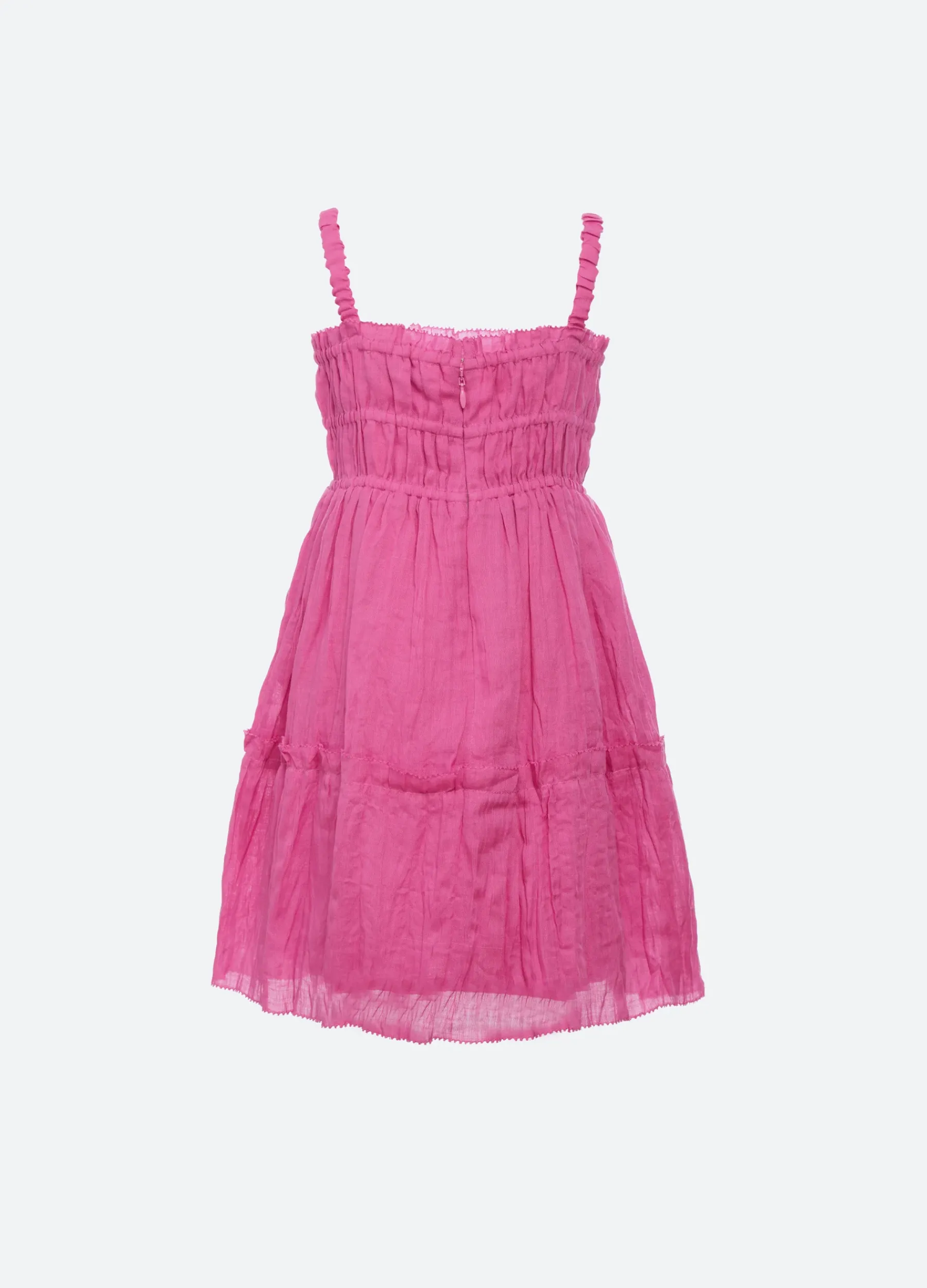 The Cole smocked kids dress features a tiered skirt and raw edge detailing. Part of our mommy & me coordinating collection.