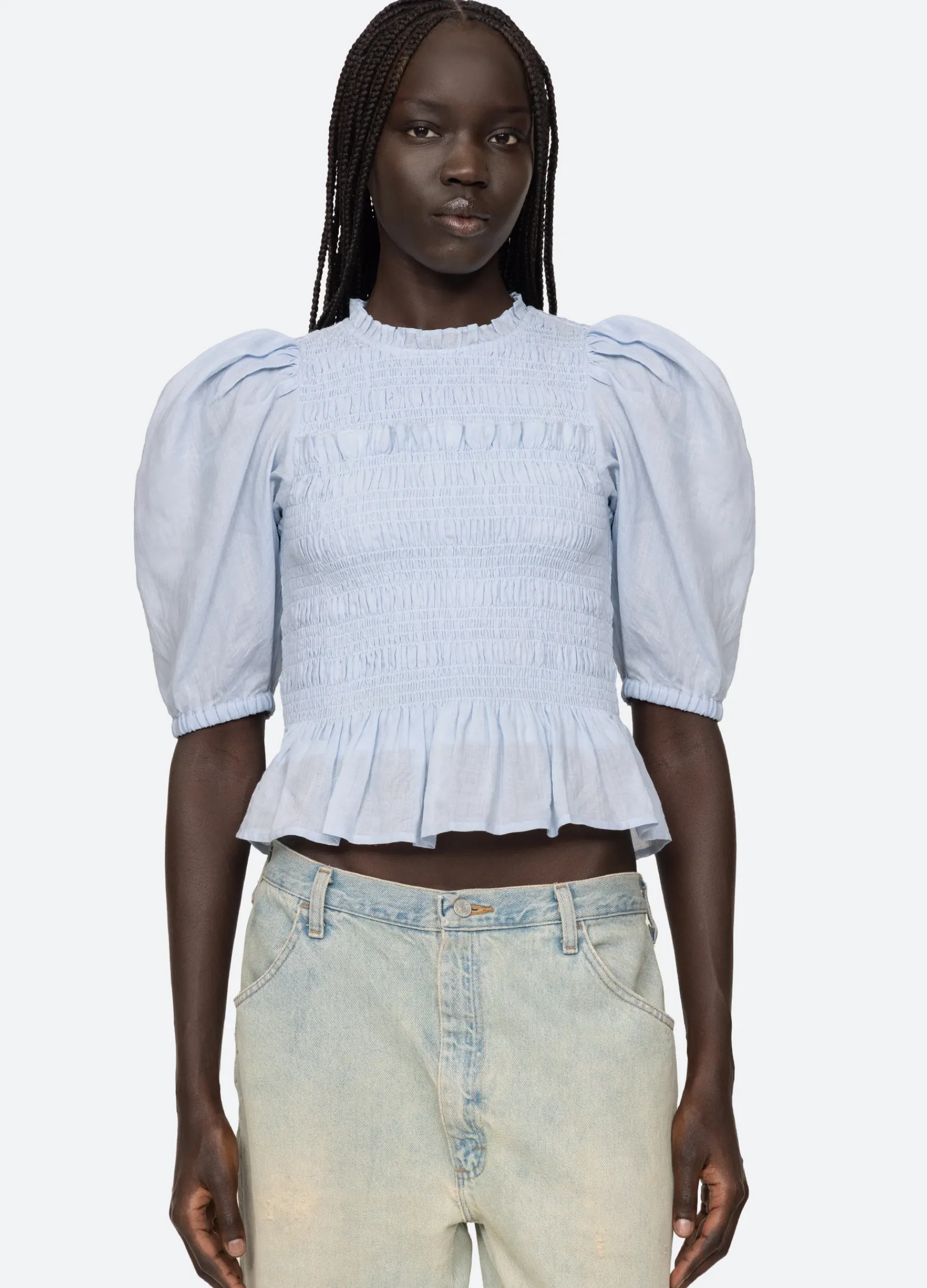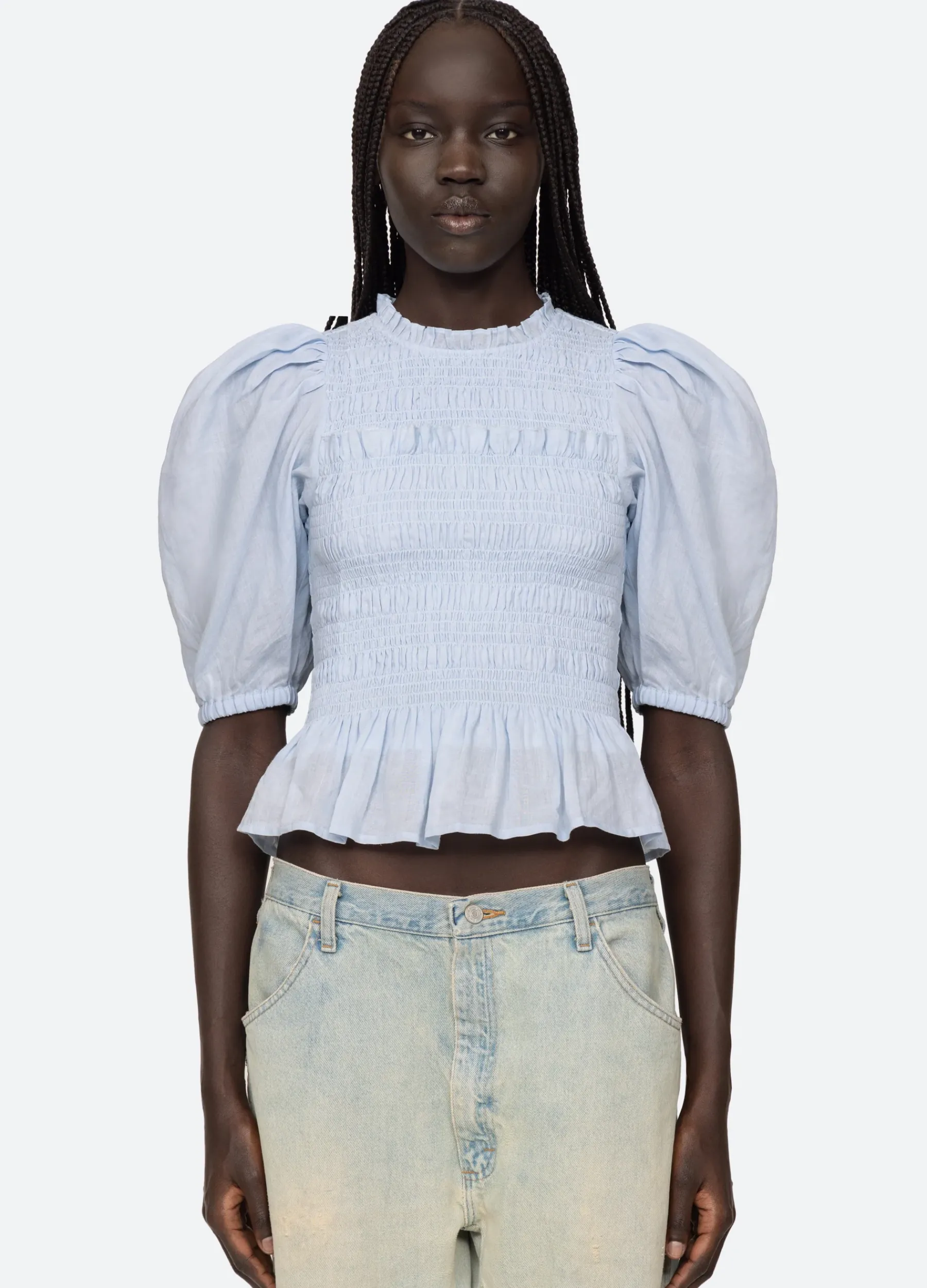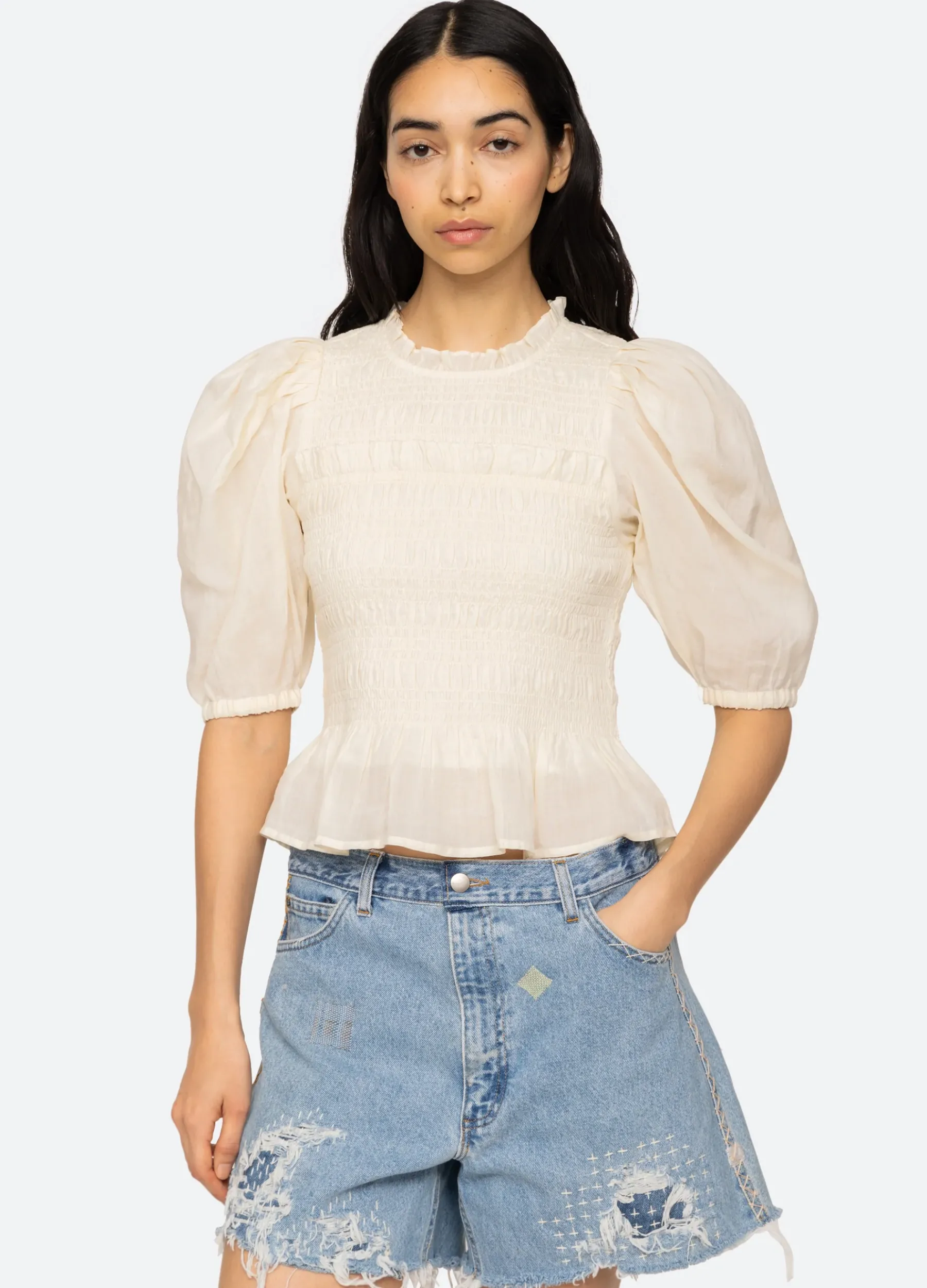 The Cole top features puff sleeves, smocked bodice and ruffle detailing.