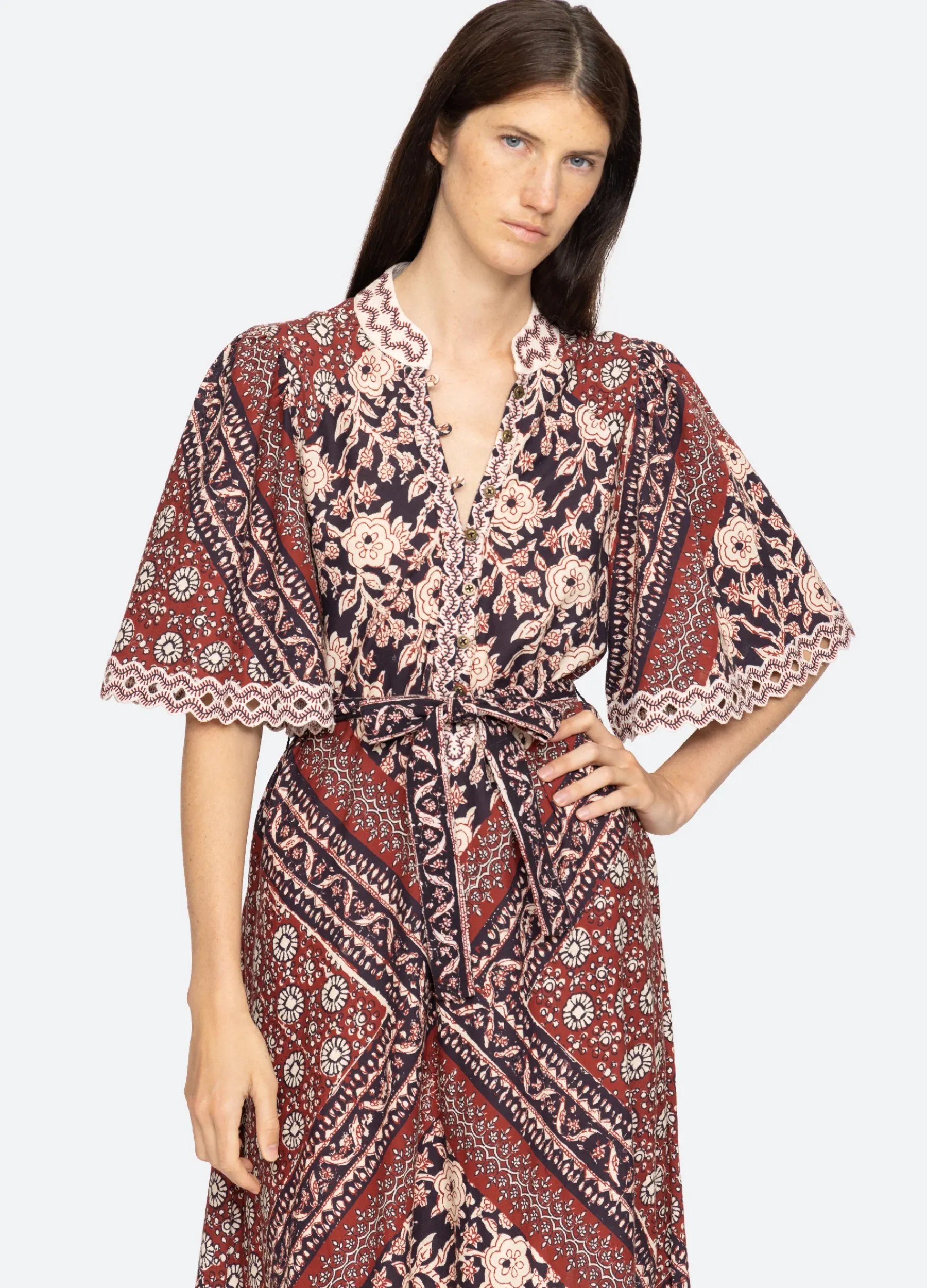 The Danae floral print short sleeve dress features voluminous sleeves with cutout accents, ric-rac trim detailing and removable belt. Designed for an easy, relaxed fit.