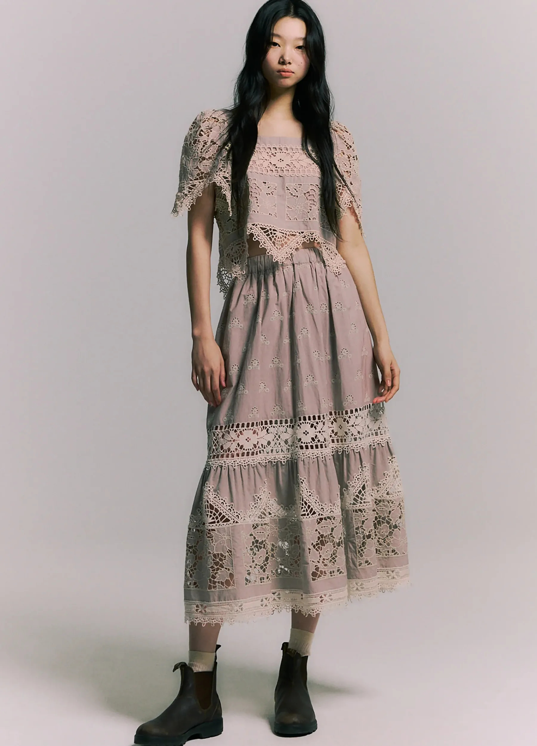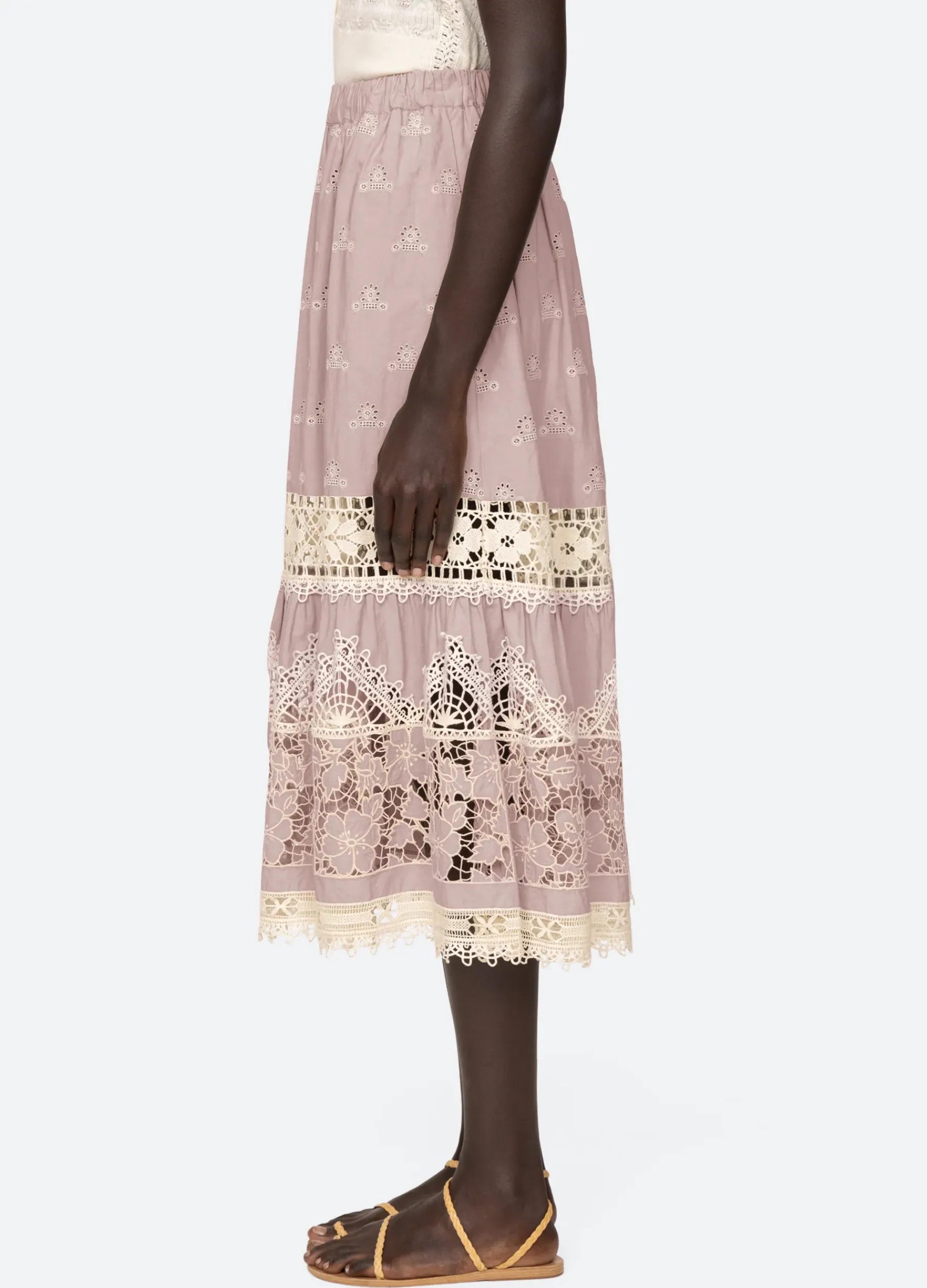 The Joah embroidered lace skirt features delicate lace detailing throughout and elasticized waist.