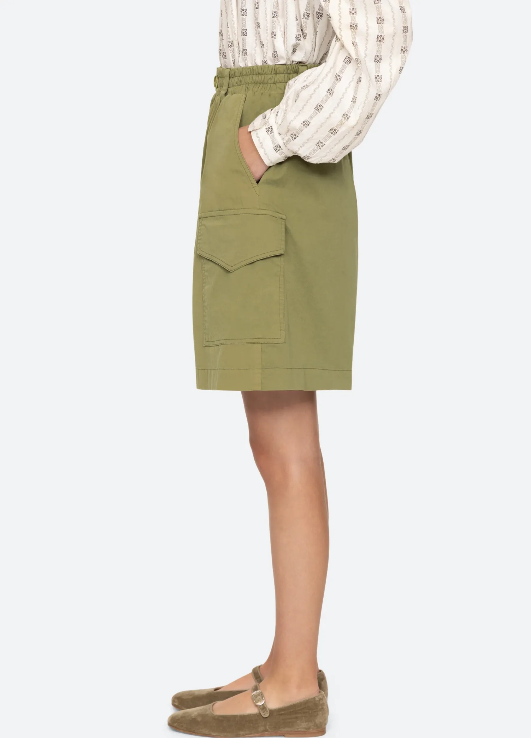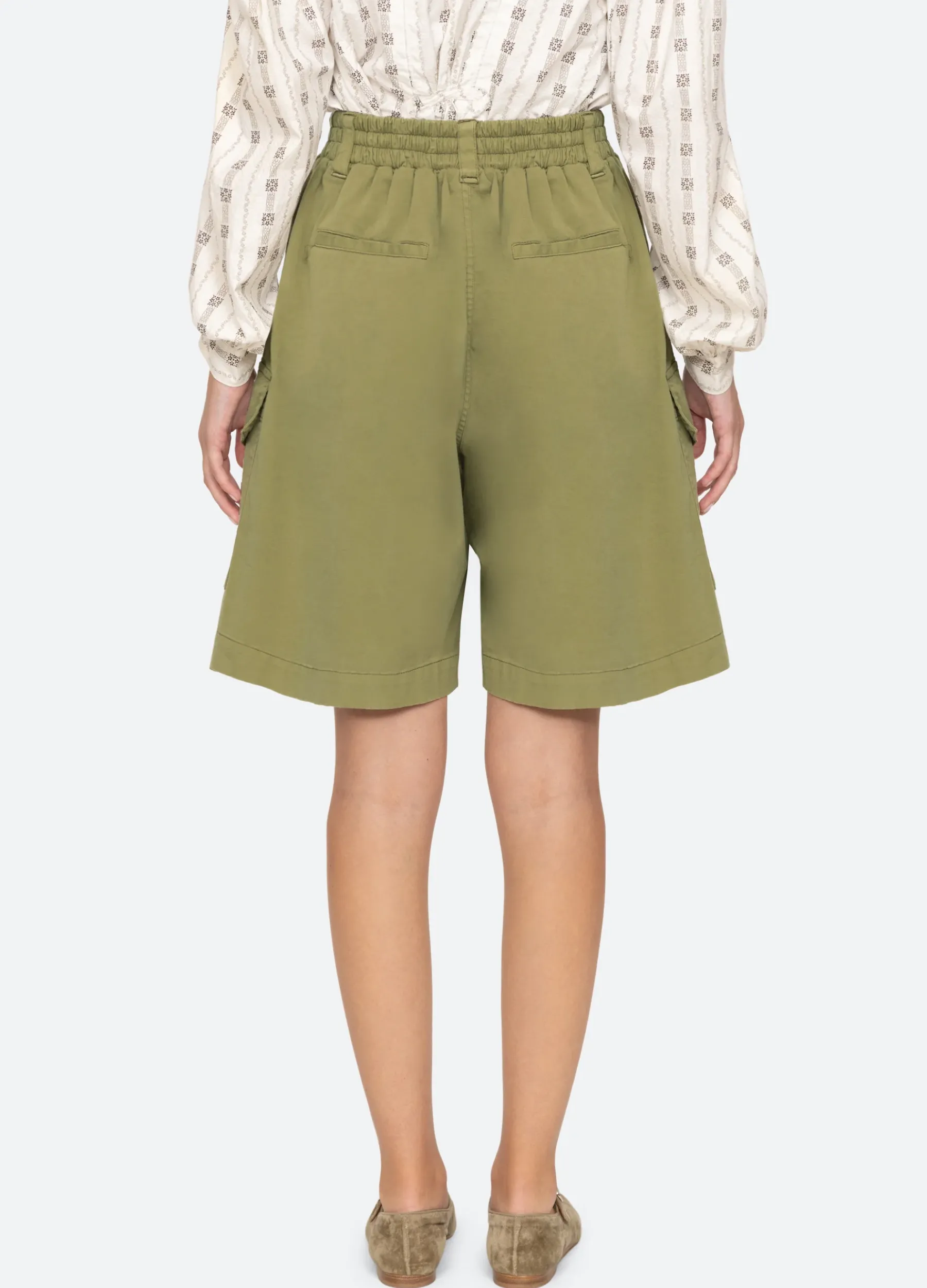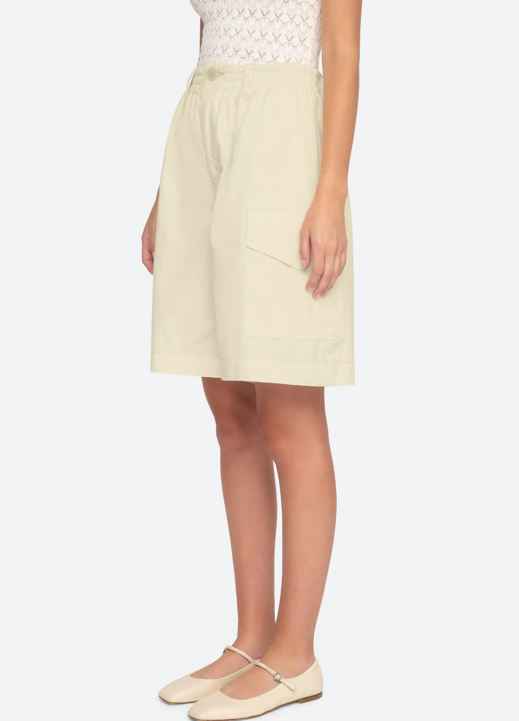 The Karina knee-length shorts feature oversized cargo pockets and are designed for an easy, relaxed fit.