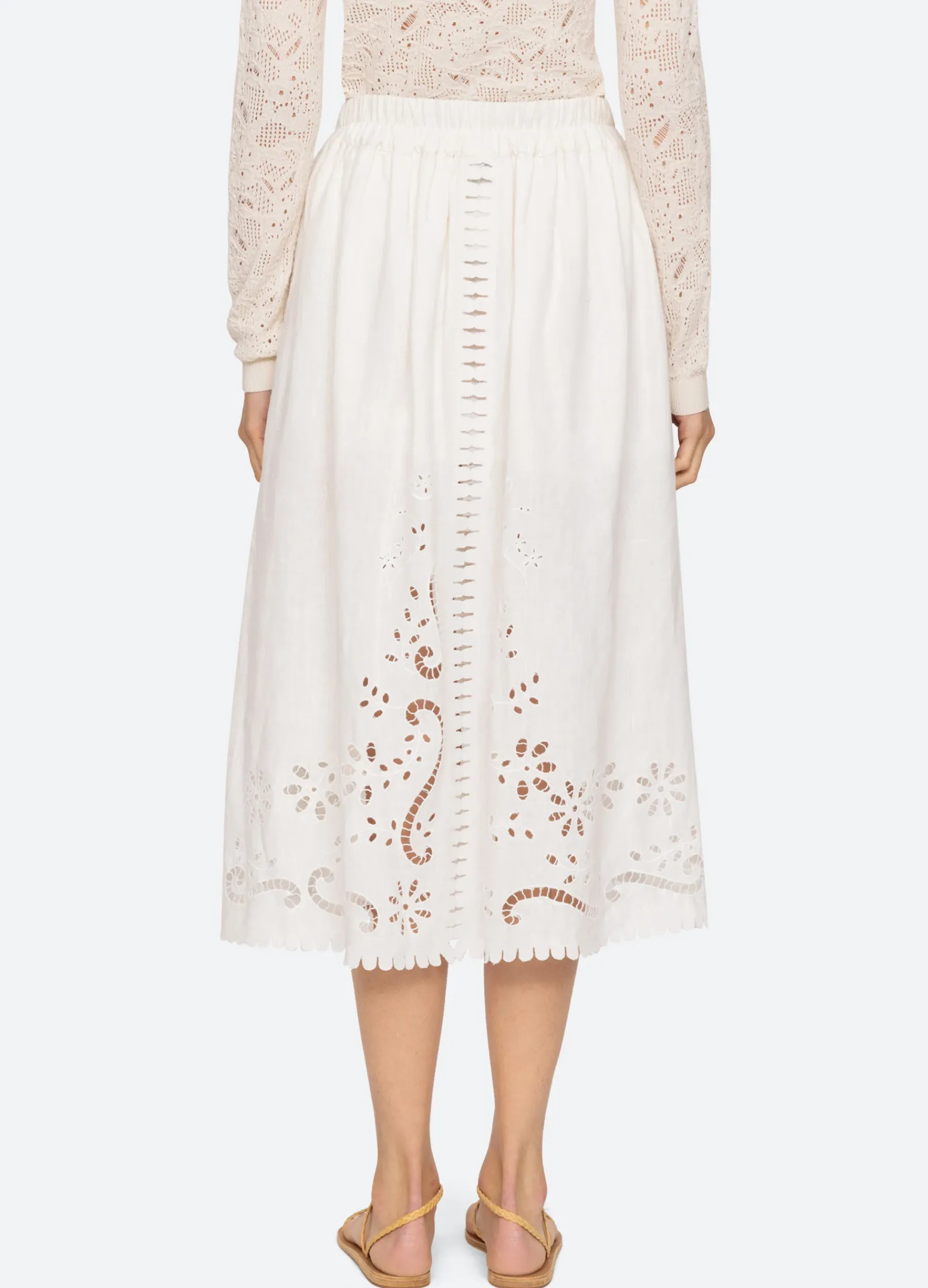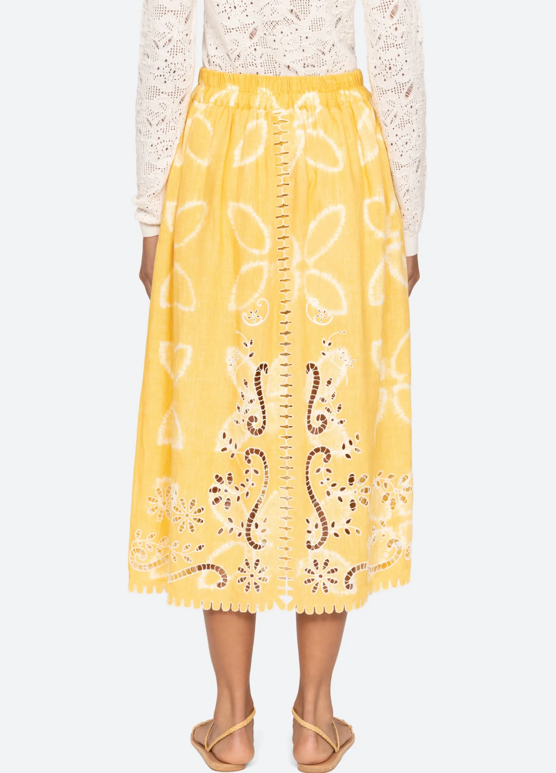 The Liat embroidered skirt features floral eyelet detailing, elasticized waist and scalloped hemline.