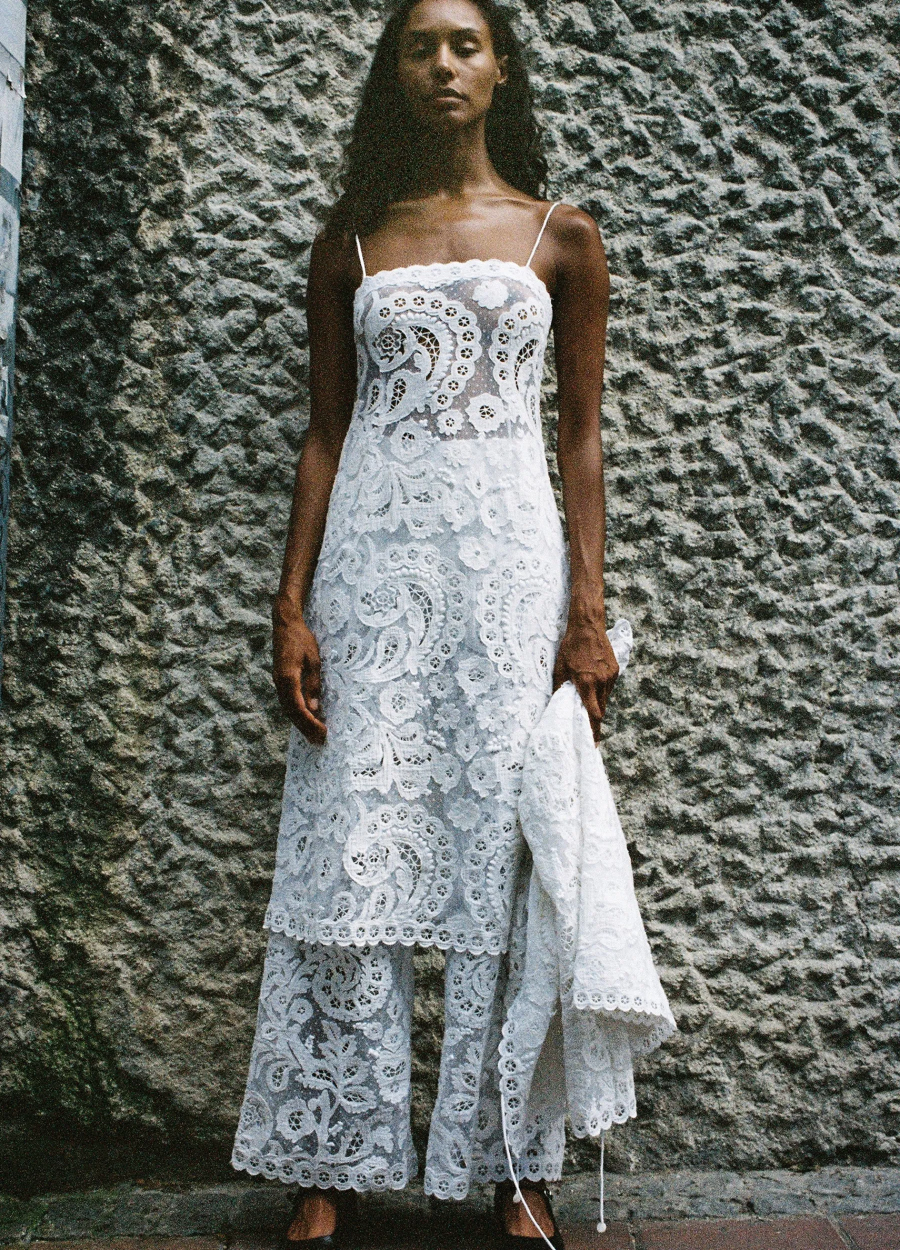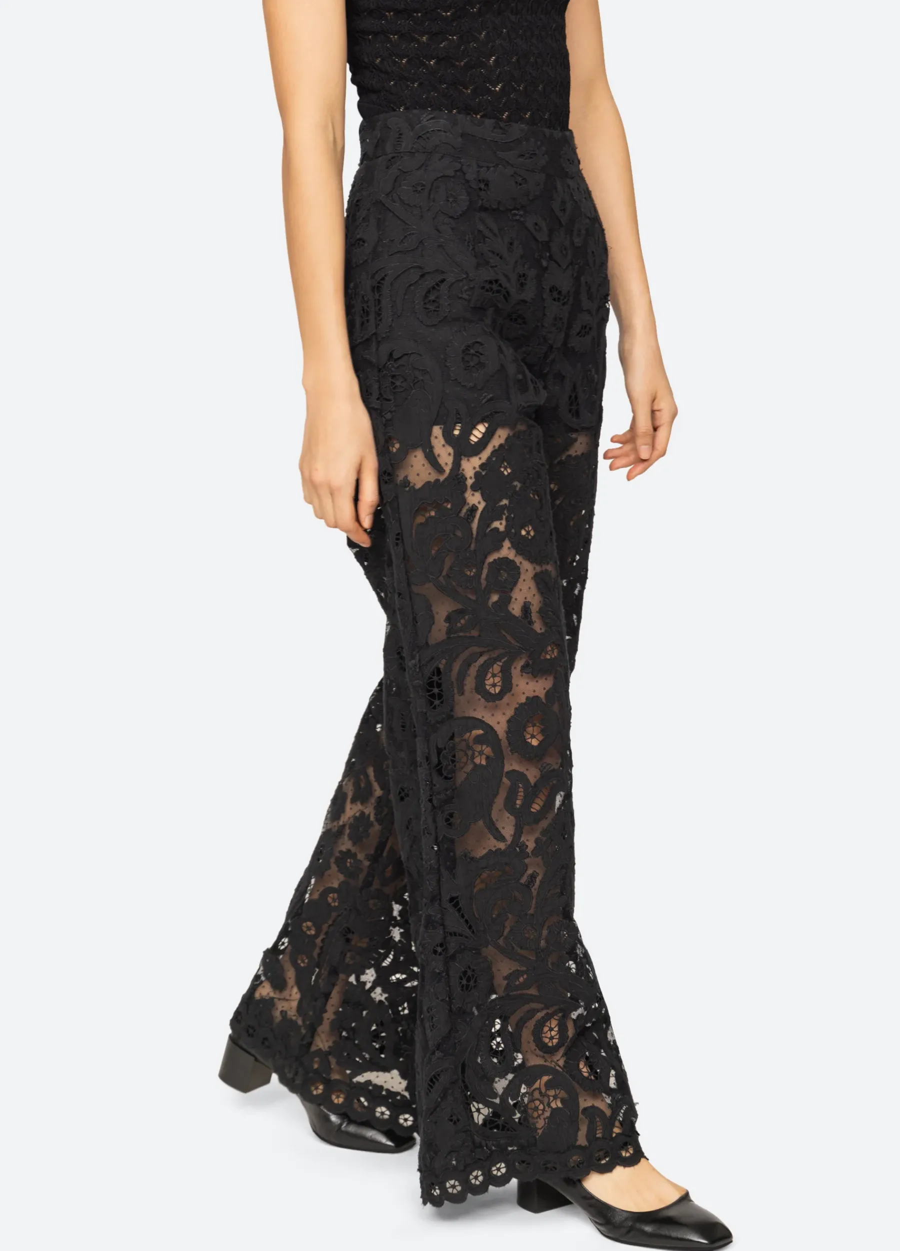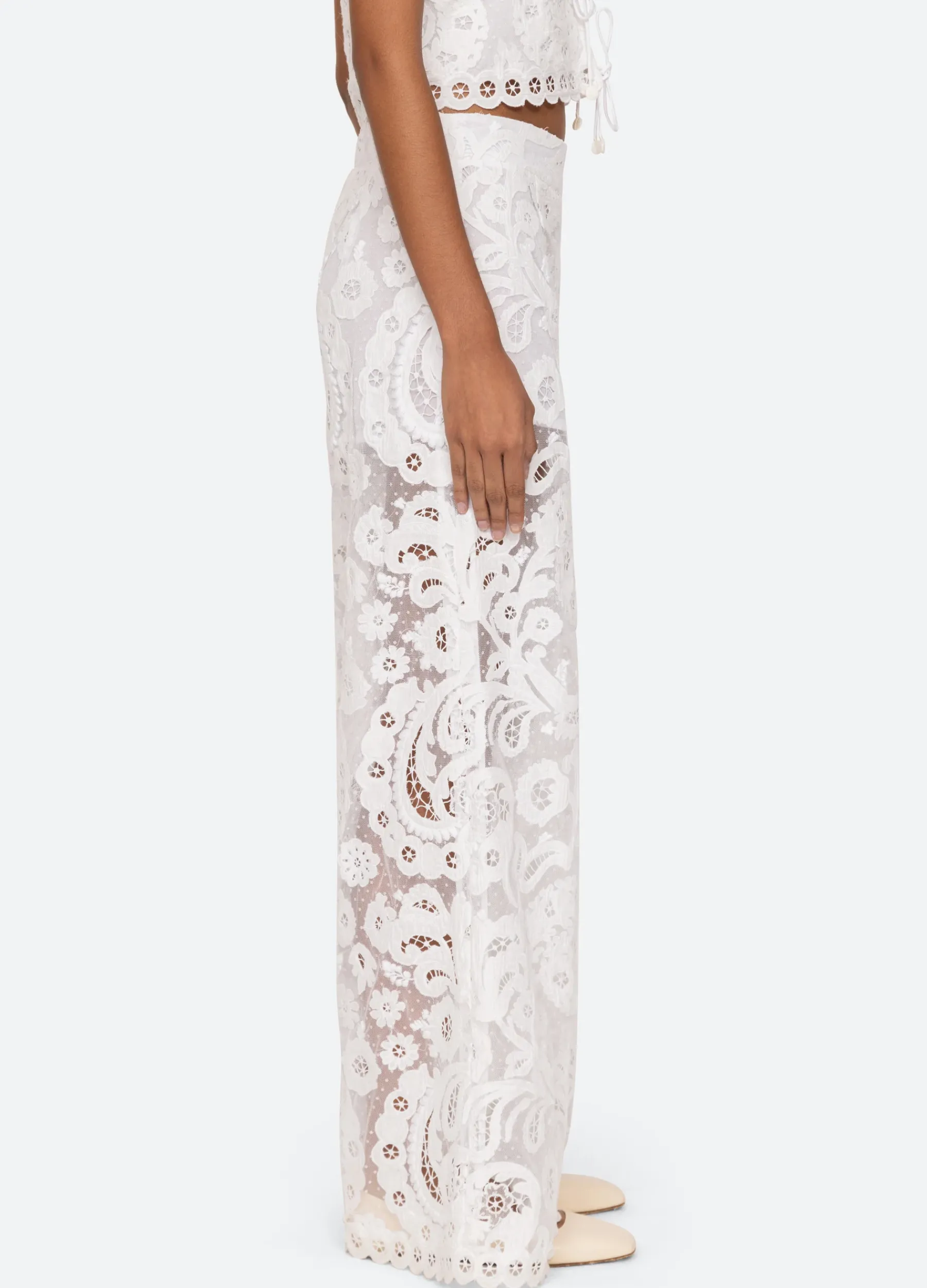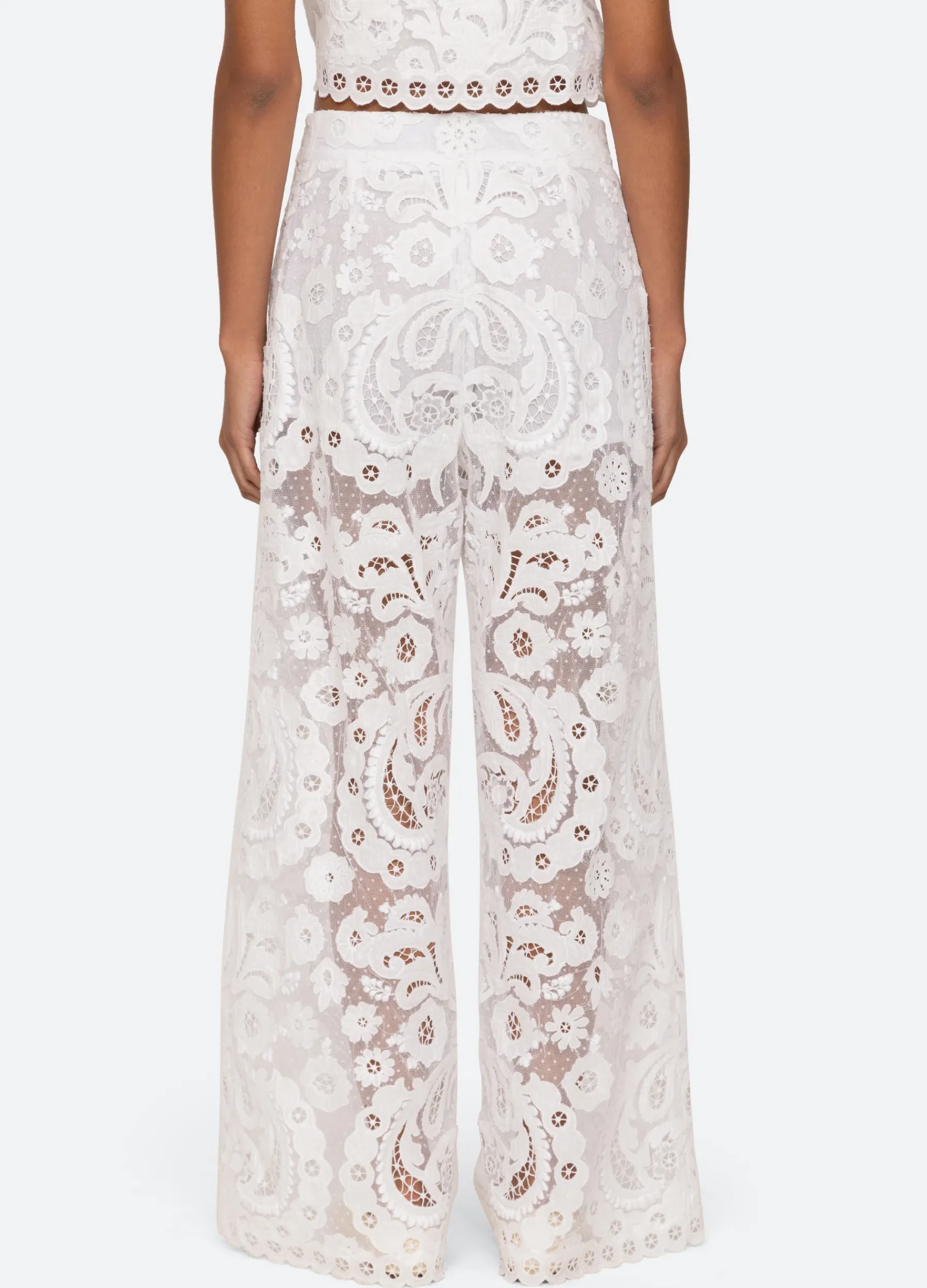 The Lovina embroidered pants feature delicate embroidered lace, eyelet trim and wide leg silhouette.