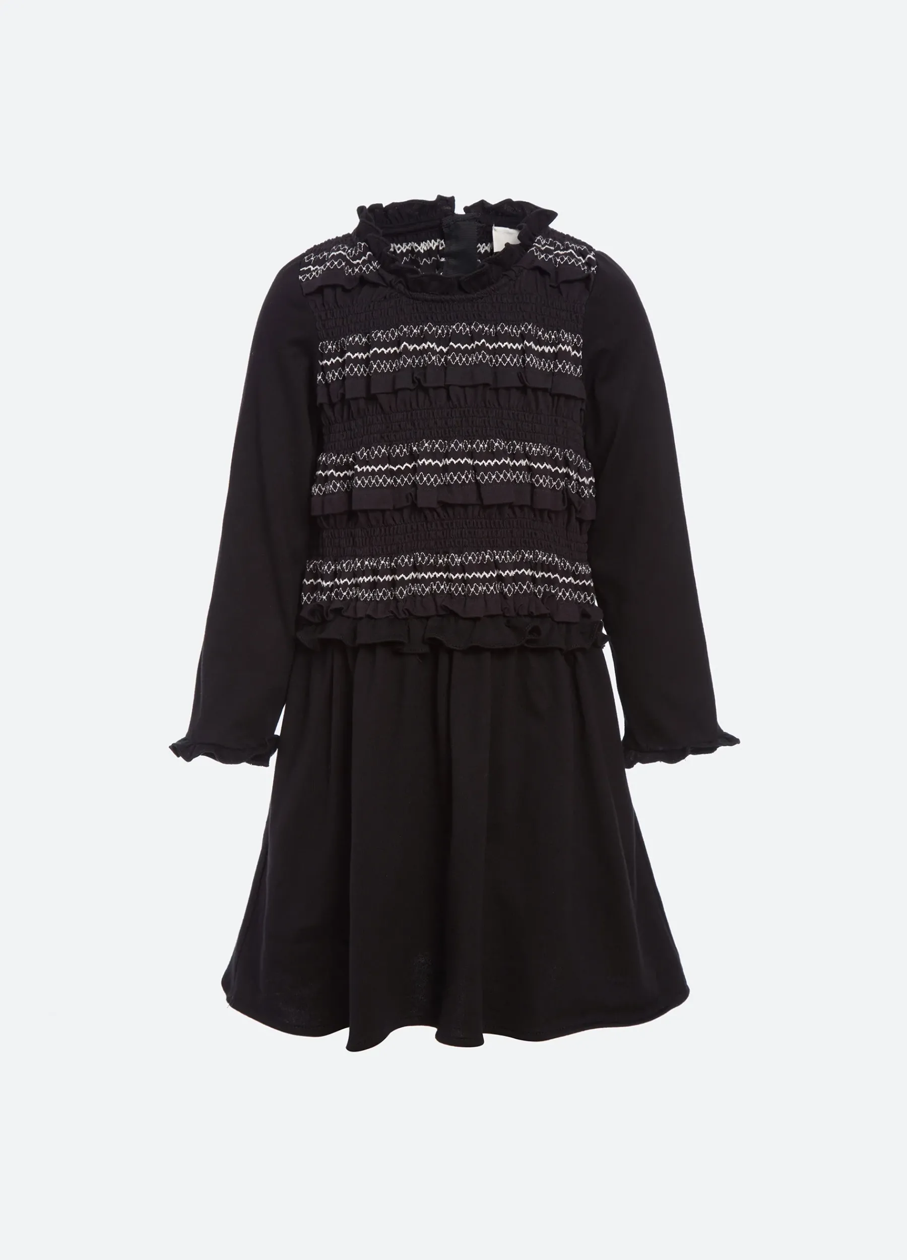The Mable cambric kids long sleeve dress features a smocked bodice and ruffle detailing. Part of our mommy & me coordinating collection.