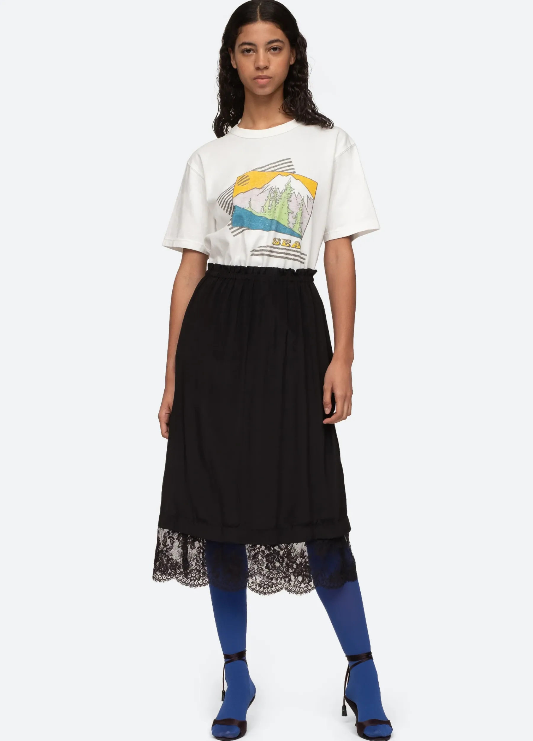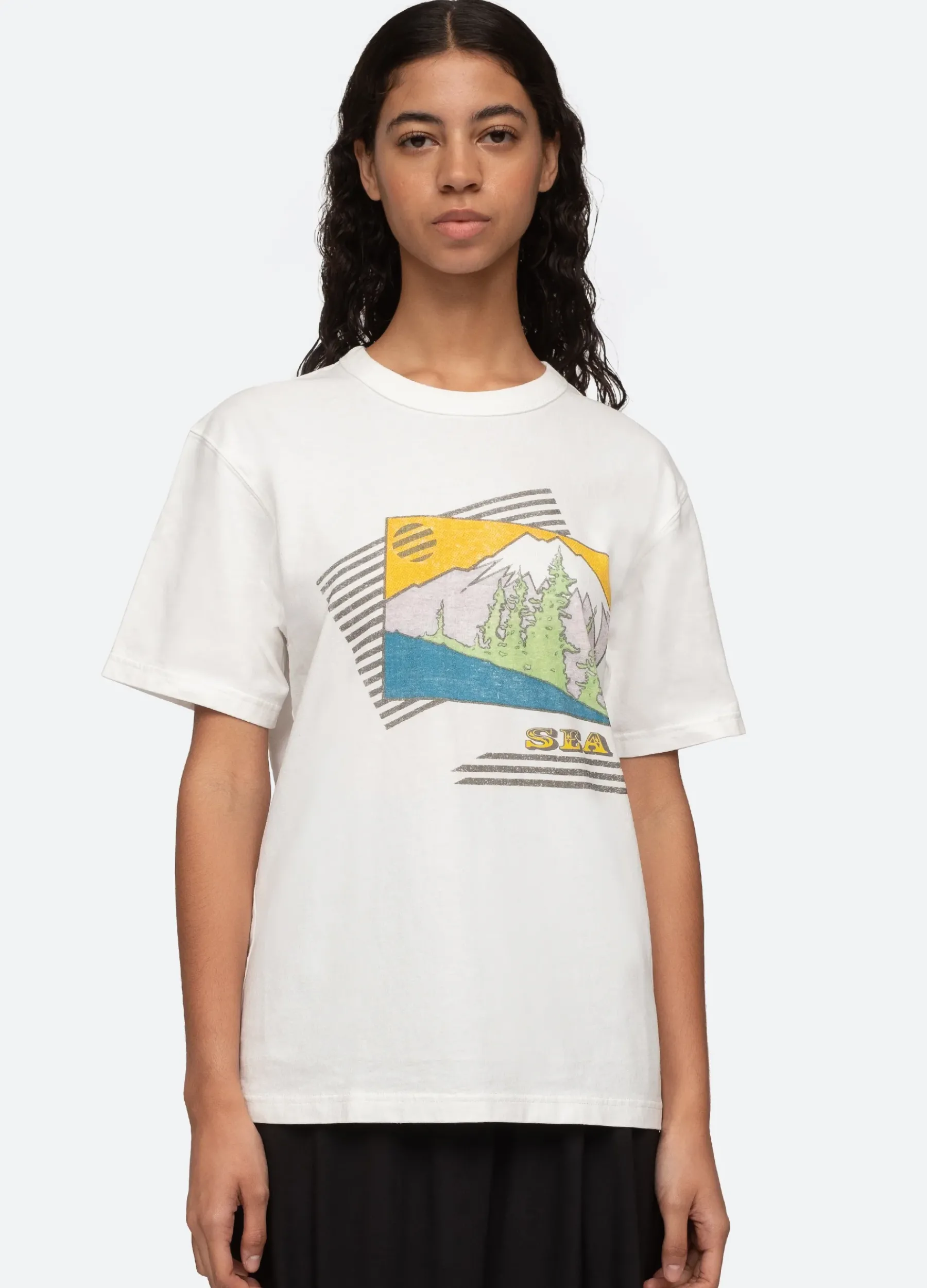 The Pamela graphic t-shirt features a volcano landscape motif.
