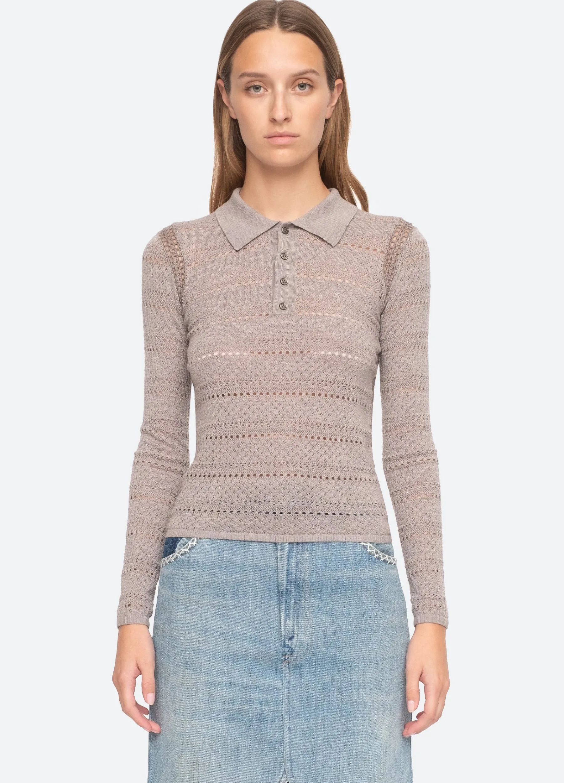 The Syble pointelle collared sweater is crafted from merino wool and is a perfect wardrobe staple.