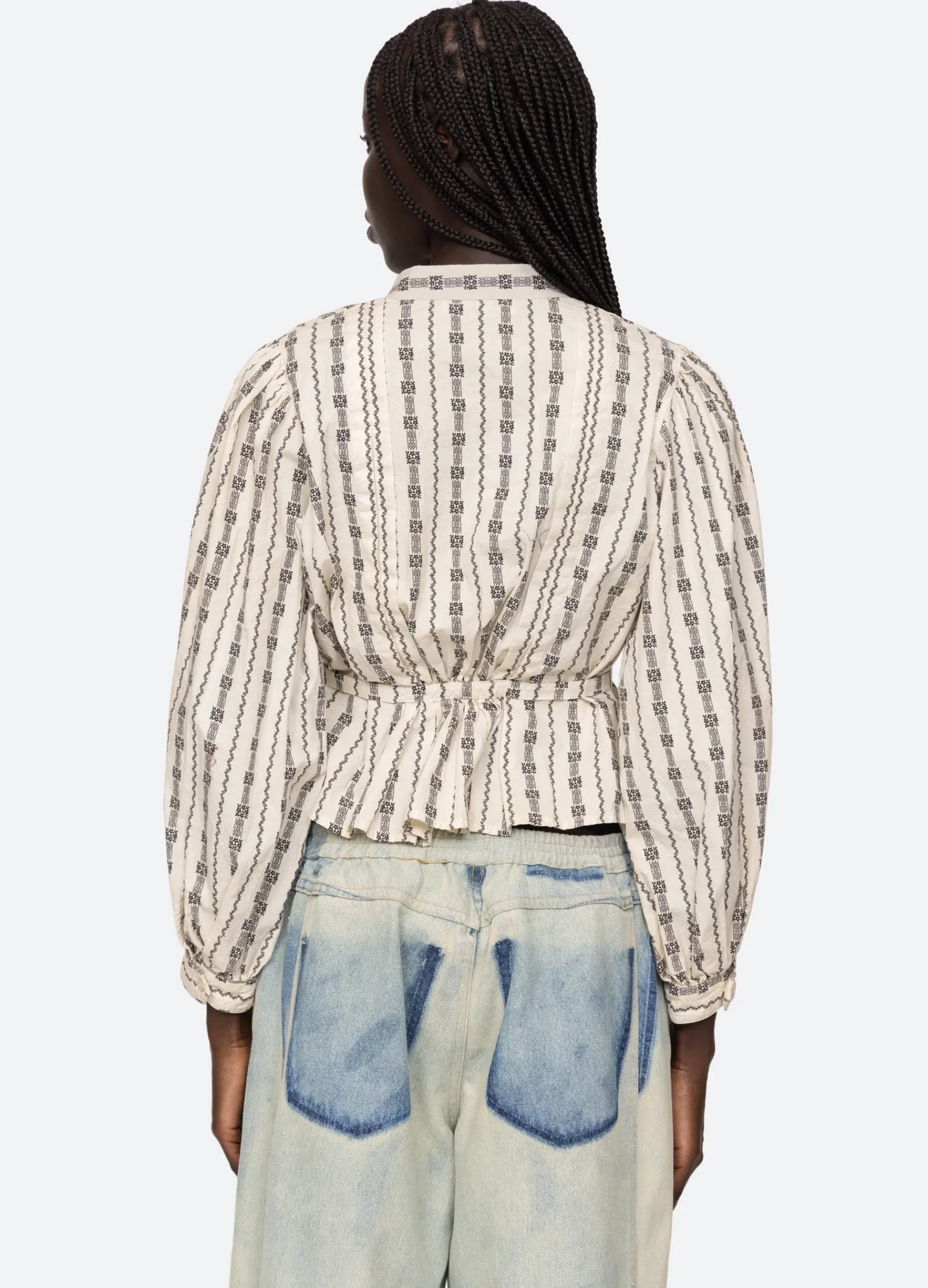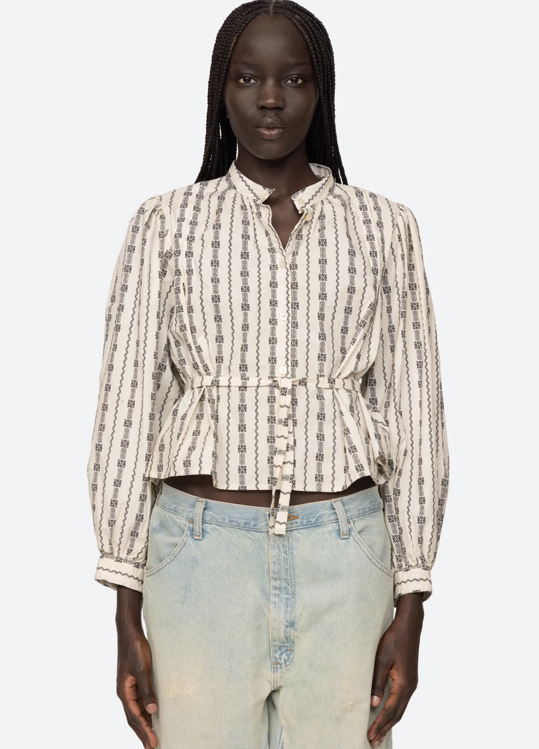 The Tala print long sleeve top features a linear graphic print and self tie belt. Designed for an easy, relaxed fit.