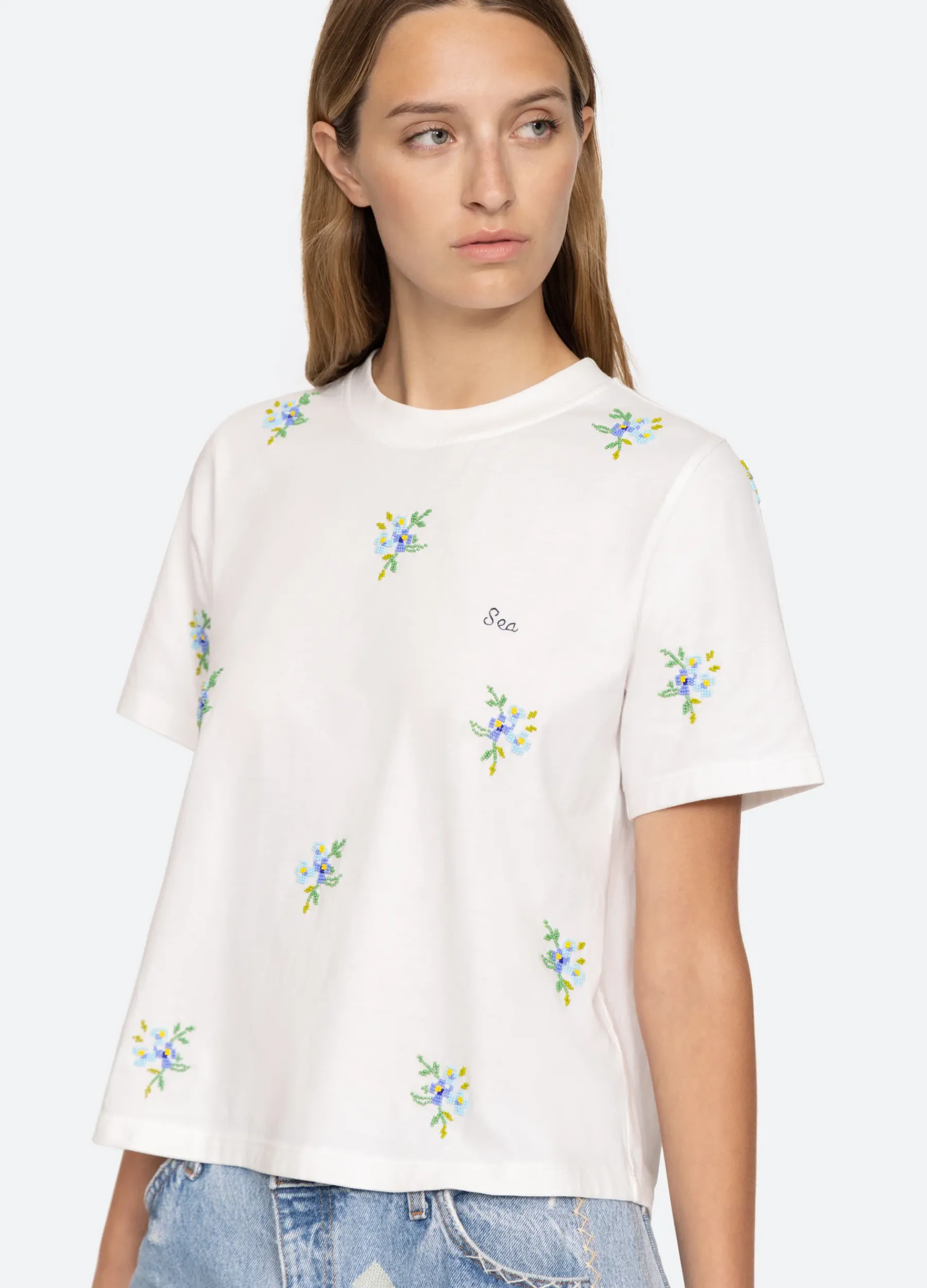 The Tania beaded t-shirt features floral beaded detailing and embroidered Sea logo.