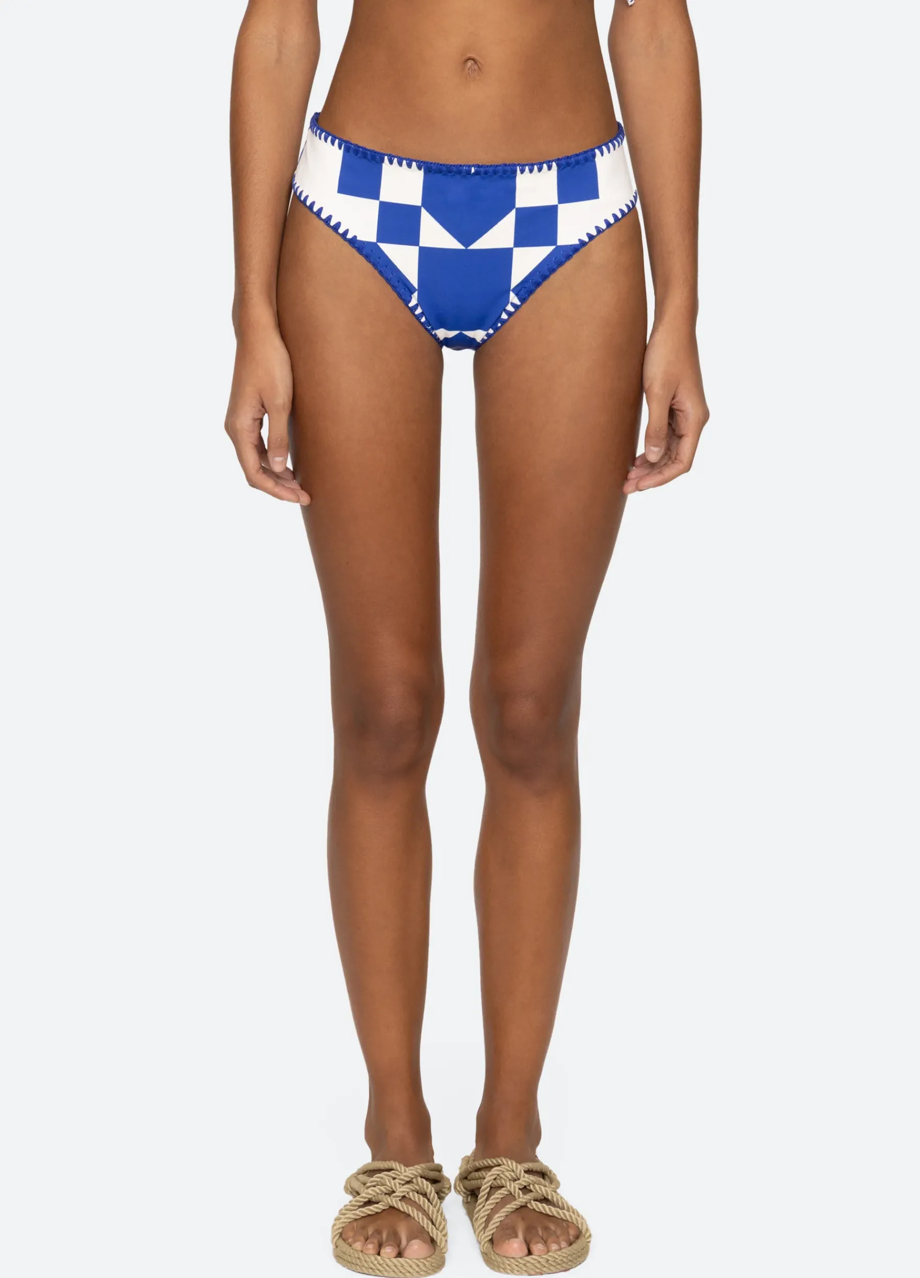 The Tanya bikini bottom features a geometric patchwork print design.